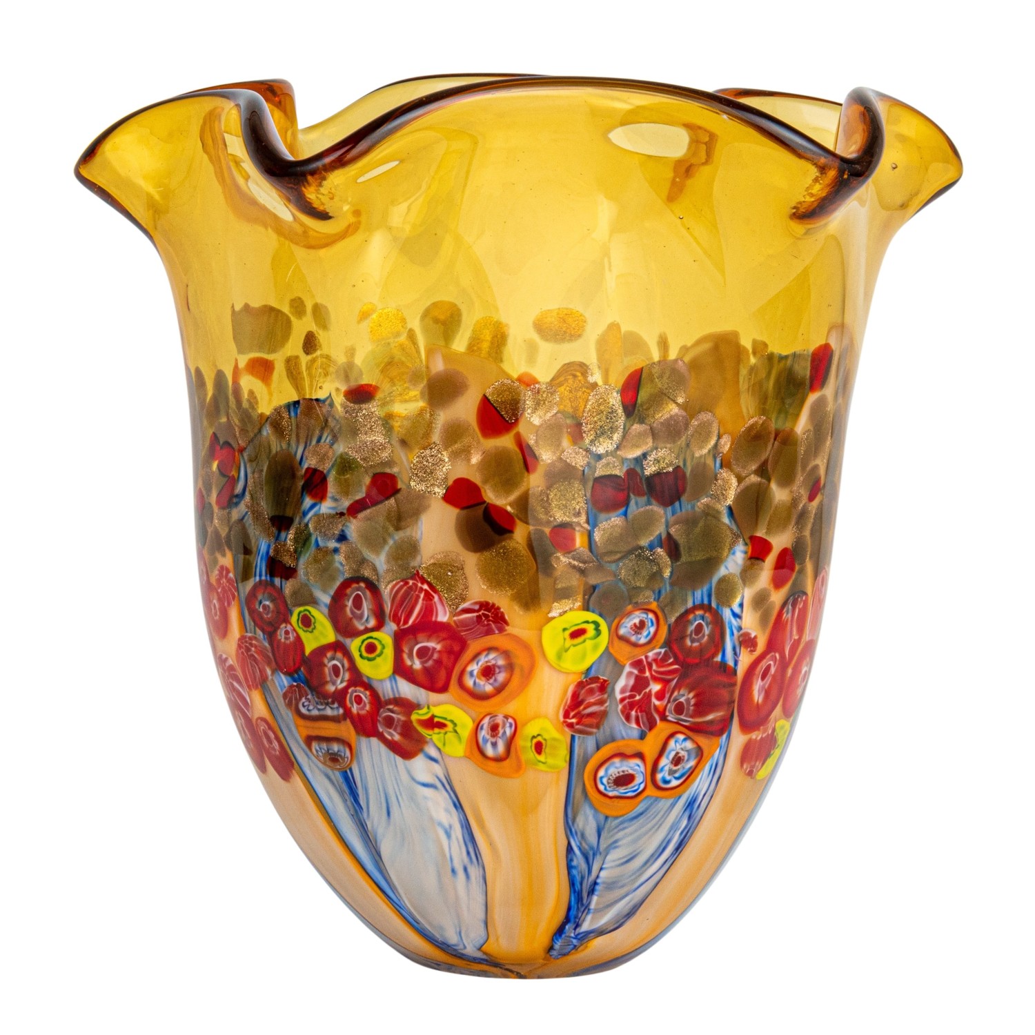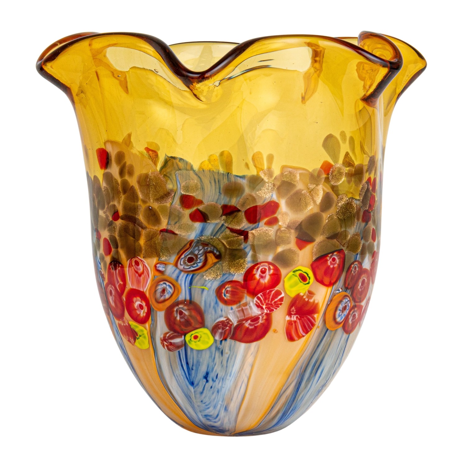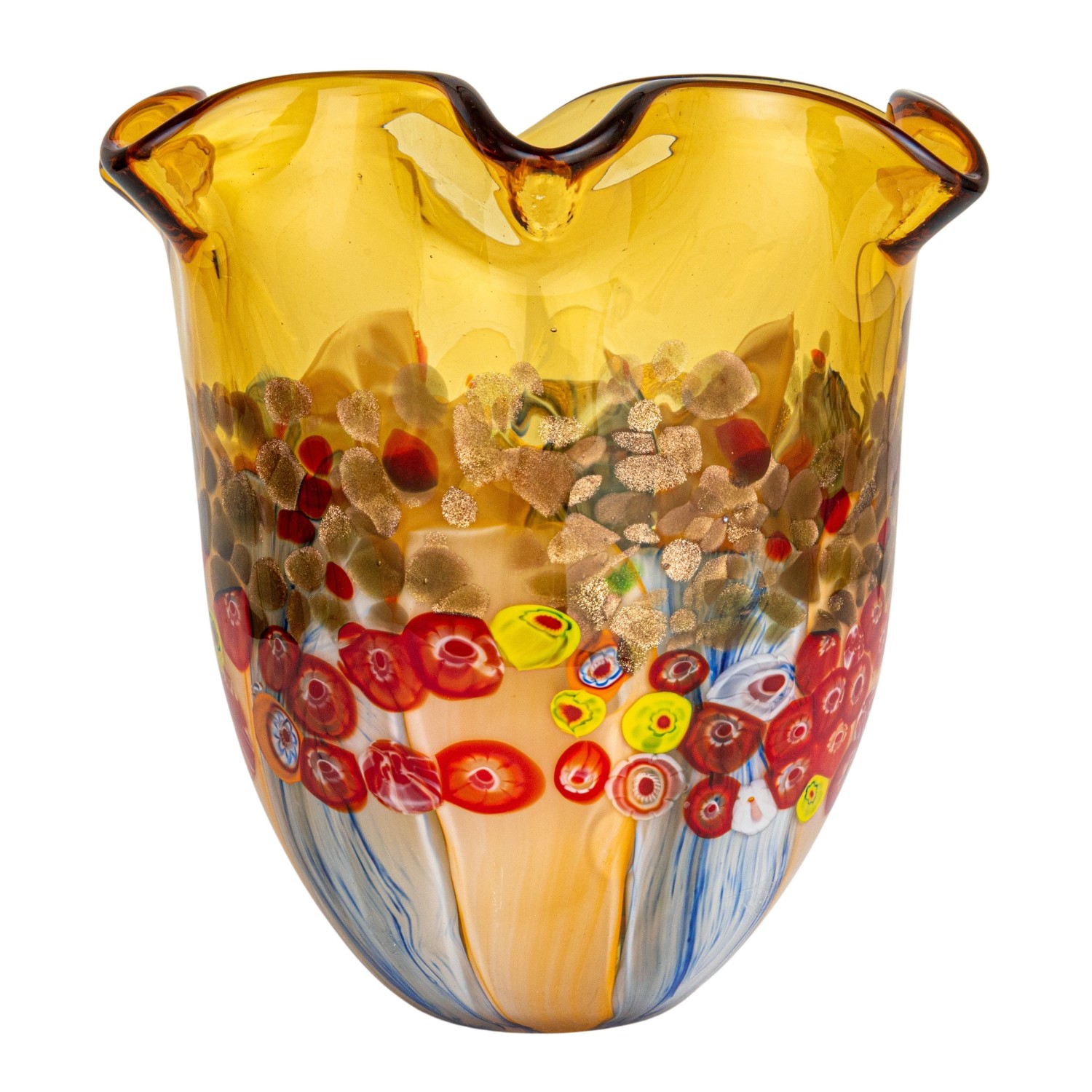 Catalog Name: 11" Round x 10-1/2"H Handmade Art Glass Vase w/ Gold Glitter, Multi Color, Truck Ship
