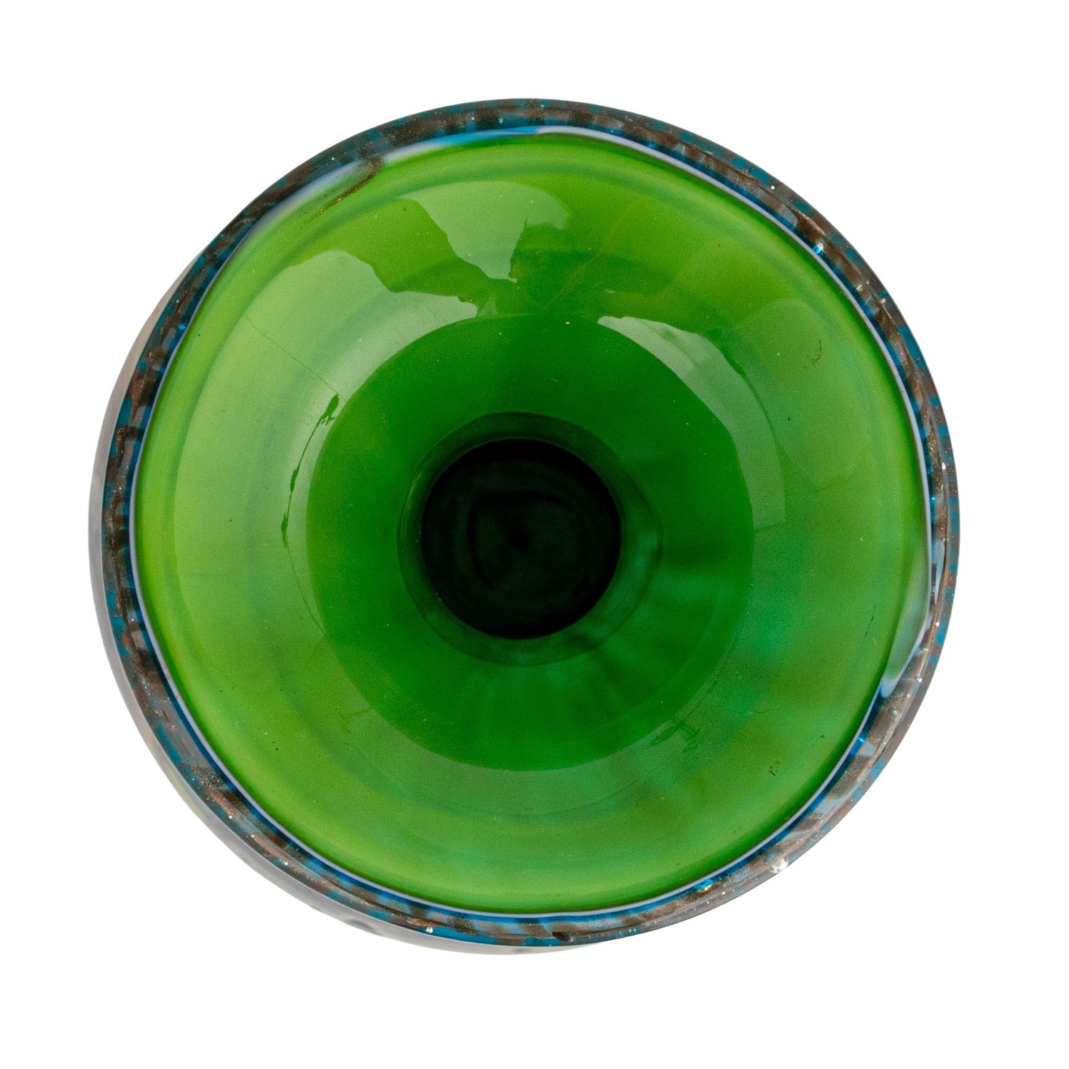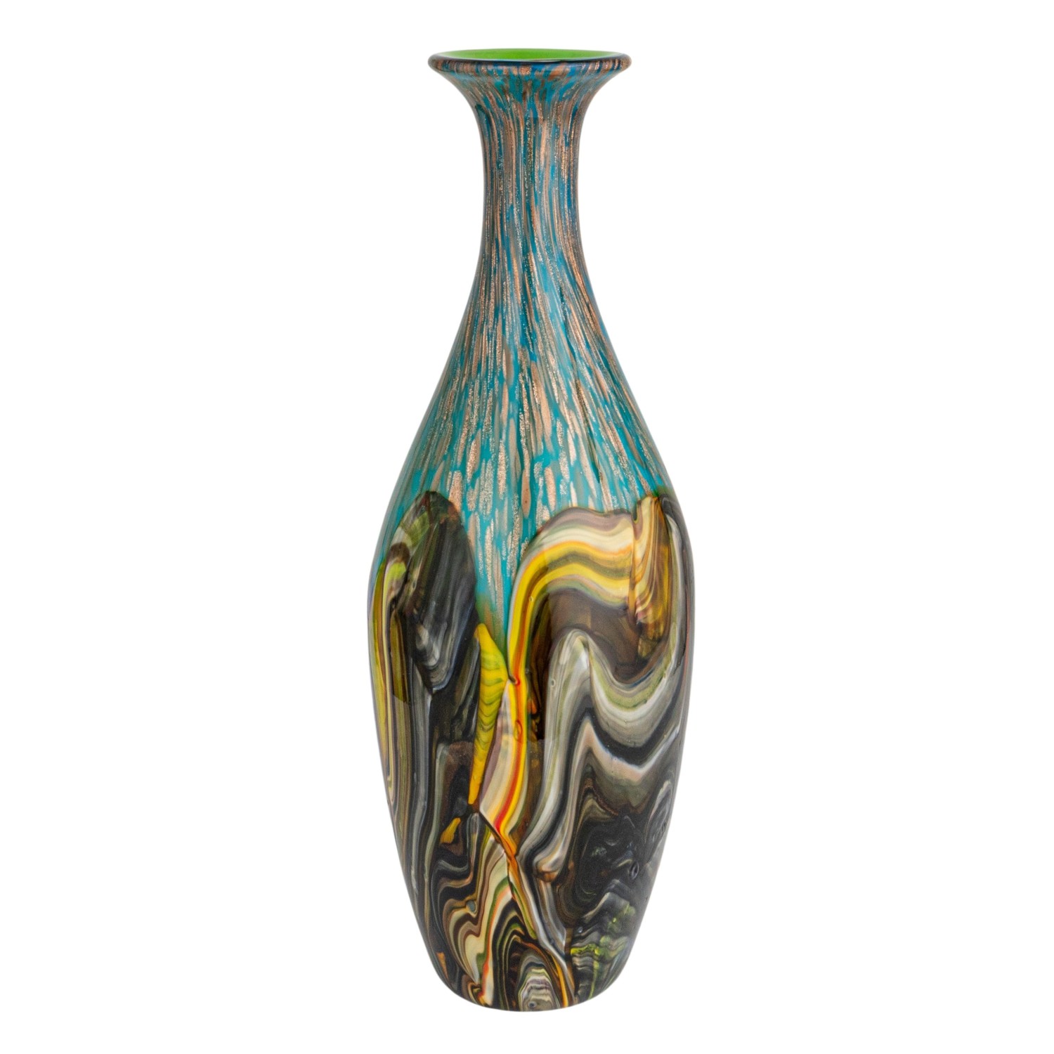 Catalog Name: 6-1/4" Round x 18-3/4"H Handmade Art Glass Vase w/ Gold Glitter, Multi Color, Truck Ship