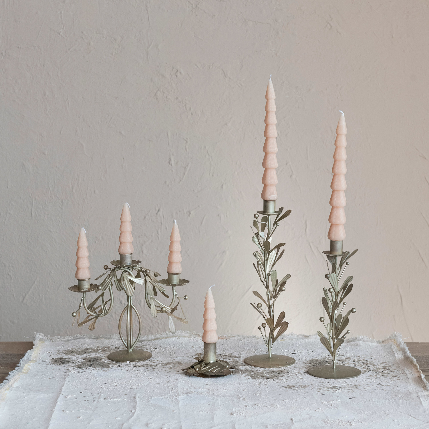 This taper candleholder is a beautiful blend of artistry and nostalgia. The distressed pewter finish gives it a timeless look, while the embossed leaves and berries evoke a sense of natural charm. It stands tall at 10 inches, making it a striking addition to any table or shelf. The round base provides stability, ensuring that candles can be displayed safely and elegantly. Whether used as part of a centerpiece or as a standalone piece, this candleholder is sure to add a touch of sophistication to any home. Elegant and durable, it's a piece that will illuminate evenings with its subtle grace. A distinguished metal taper candleholder, adorned with delicate leaves and berries, finished in distressed pewter for a vintage allure. A piece that harmonizes with any decor, adding a touch of nature's elegance to both traditional and modern settings. Ideal for enhancing the ambiance of the dining area or as a decorative accent in the living space.