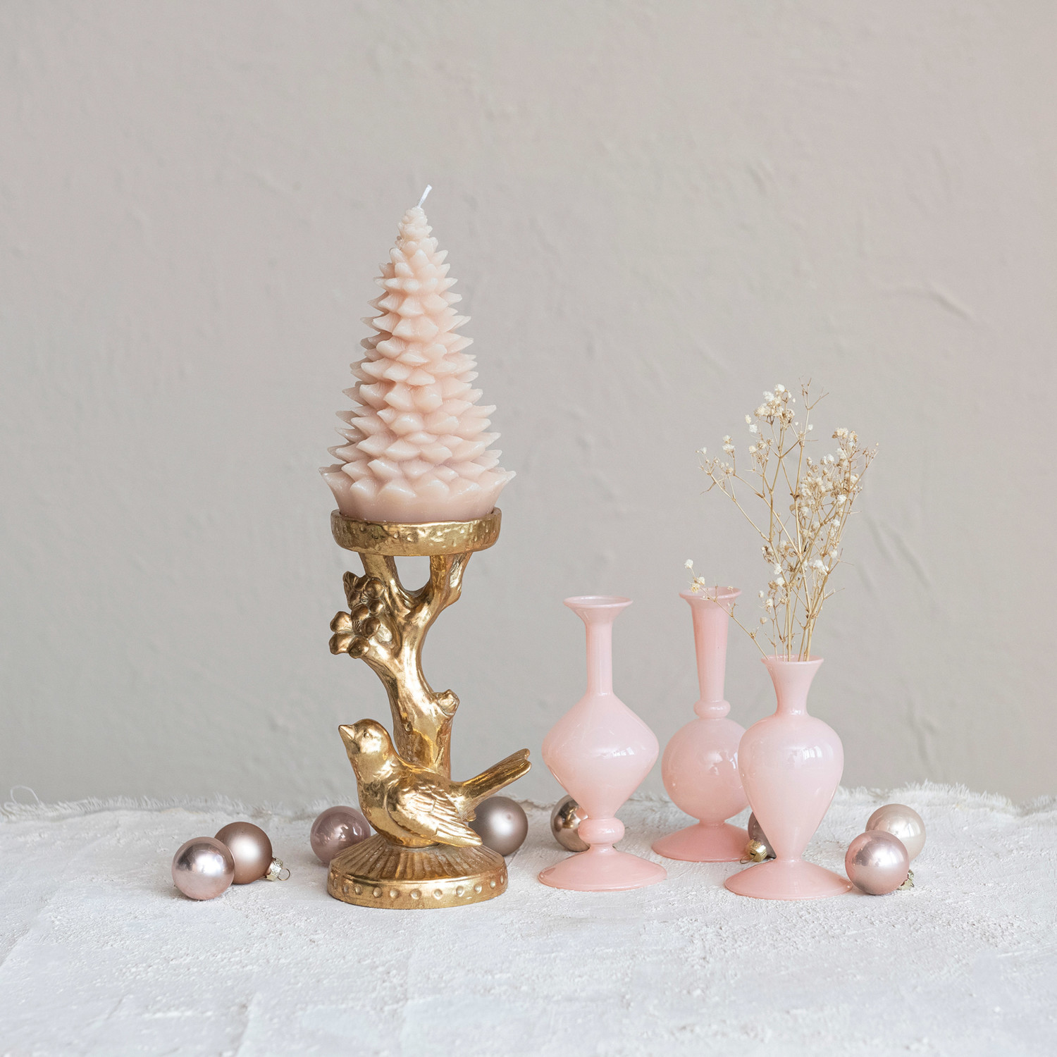 Resin Candle Holder w/ Bird & Branch, Gold Finish