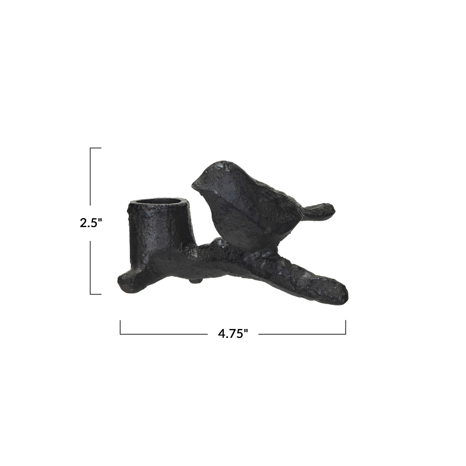Catalog Name: 4-3/4"L x 3-1/4"W x 2-1/2"H Cast Iron Taper Holder w/ Bird on Branch, Black/Brown
