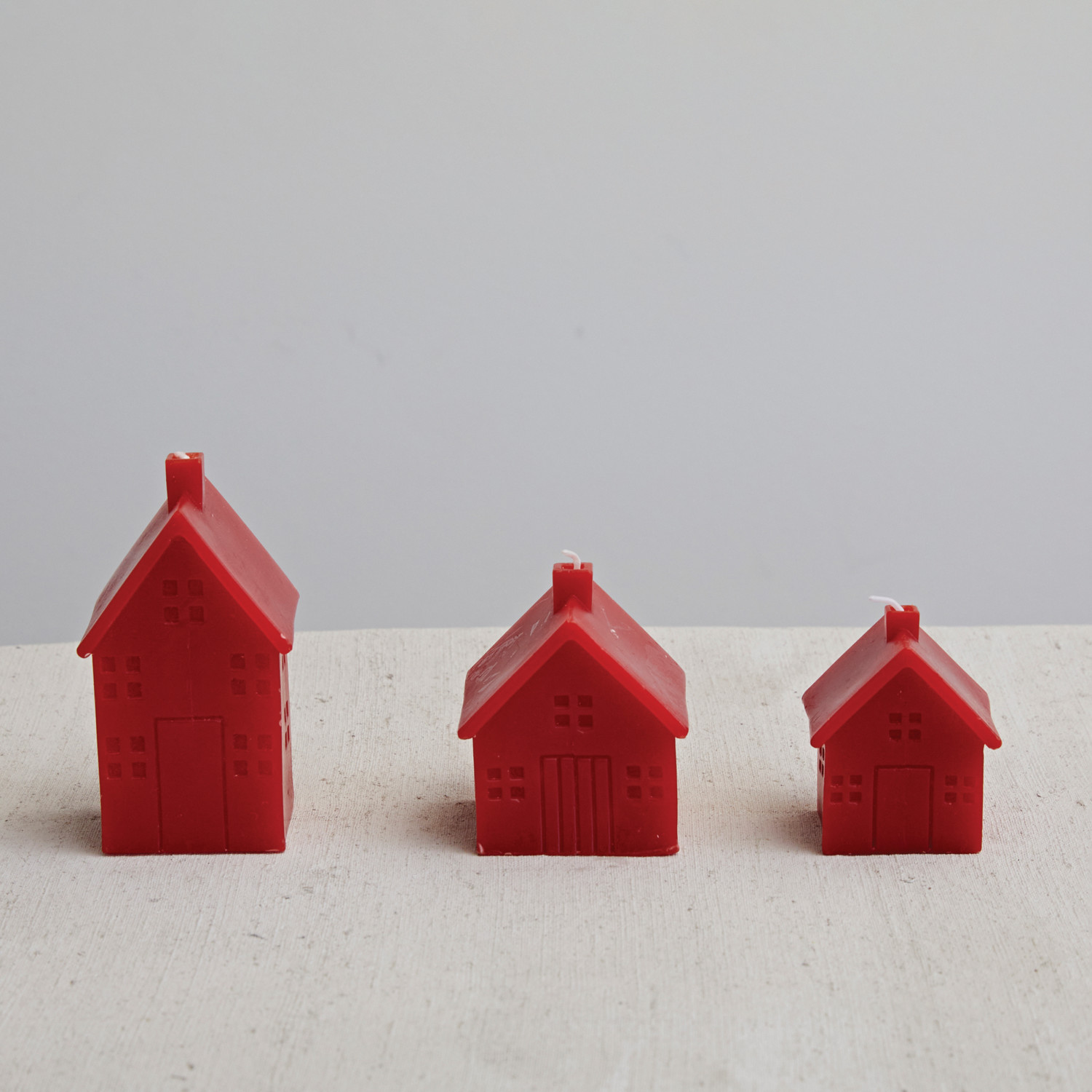 2-1/2" Square x 3"H Unscented House Shaped Candle, Red (Approximate Burn Time 24 Hours)