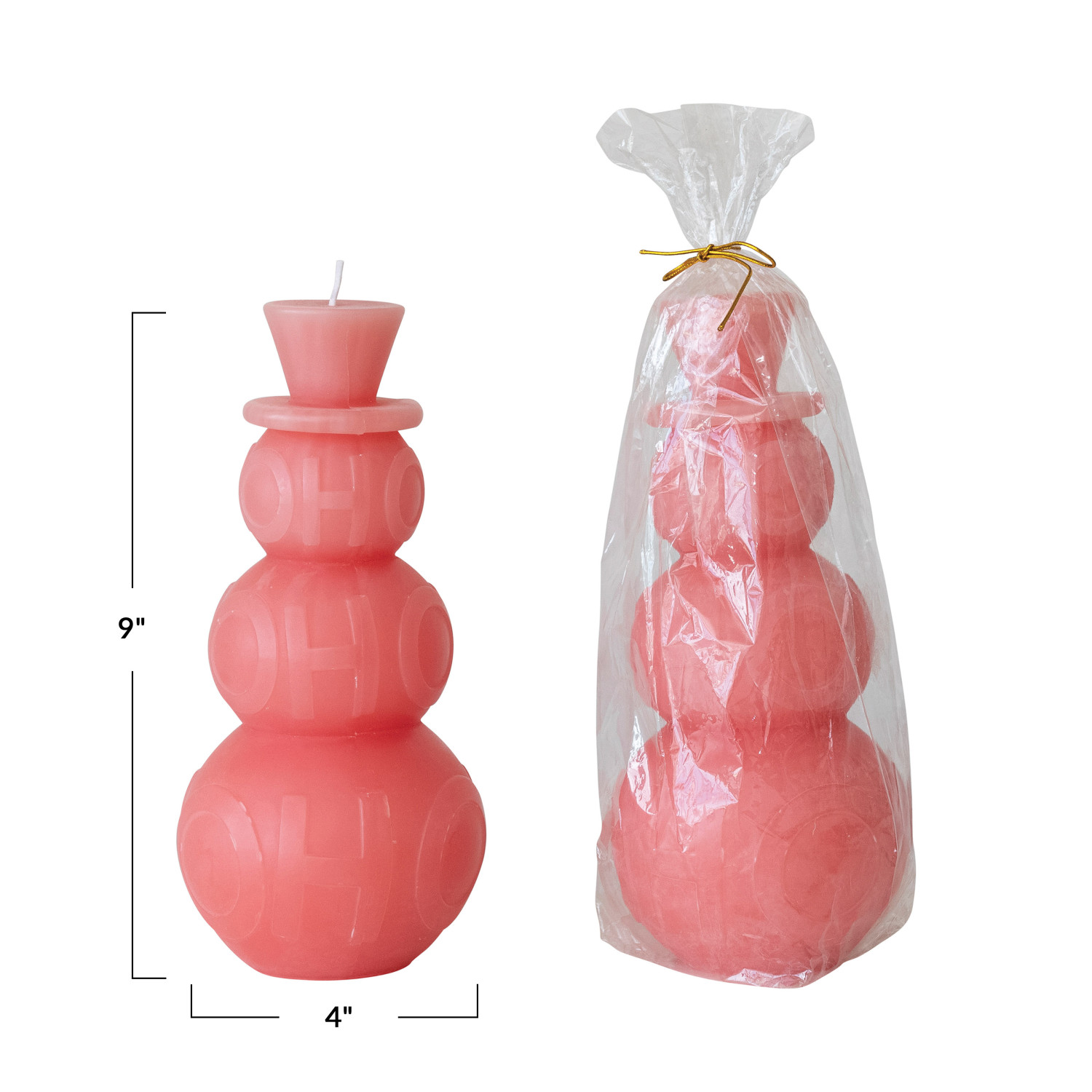 Unscented Snowman Shaped Pillar Candle "Ho Ho Ho", Pink