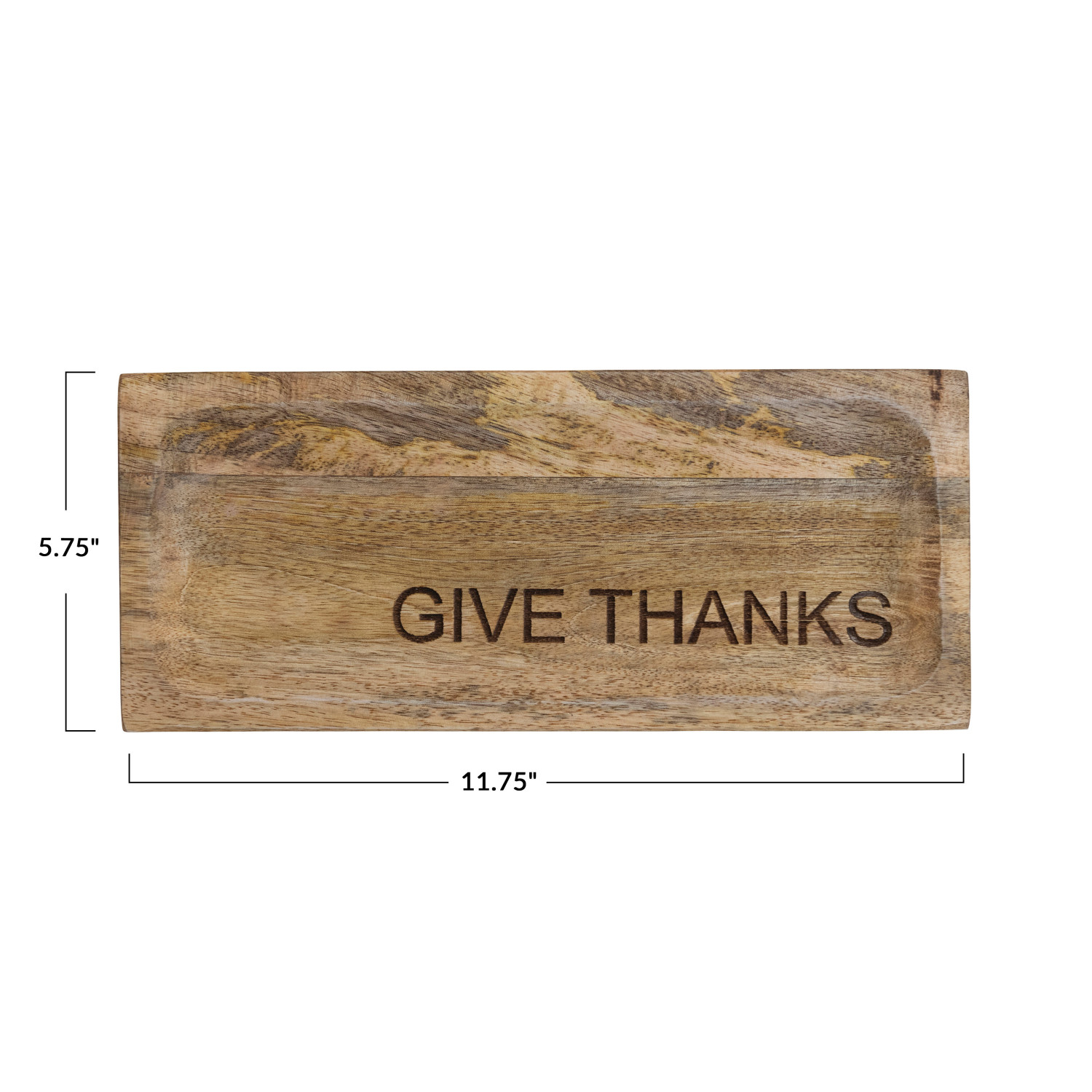 11-3/4"L x 5-3/4"W Engraved Mango Wood Cheese/Cutting Board "Give Thanks", Natural