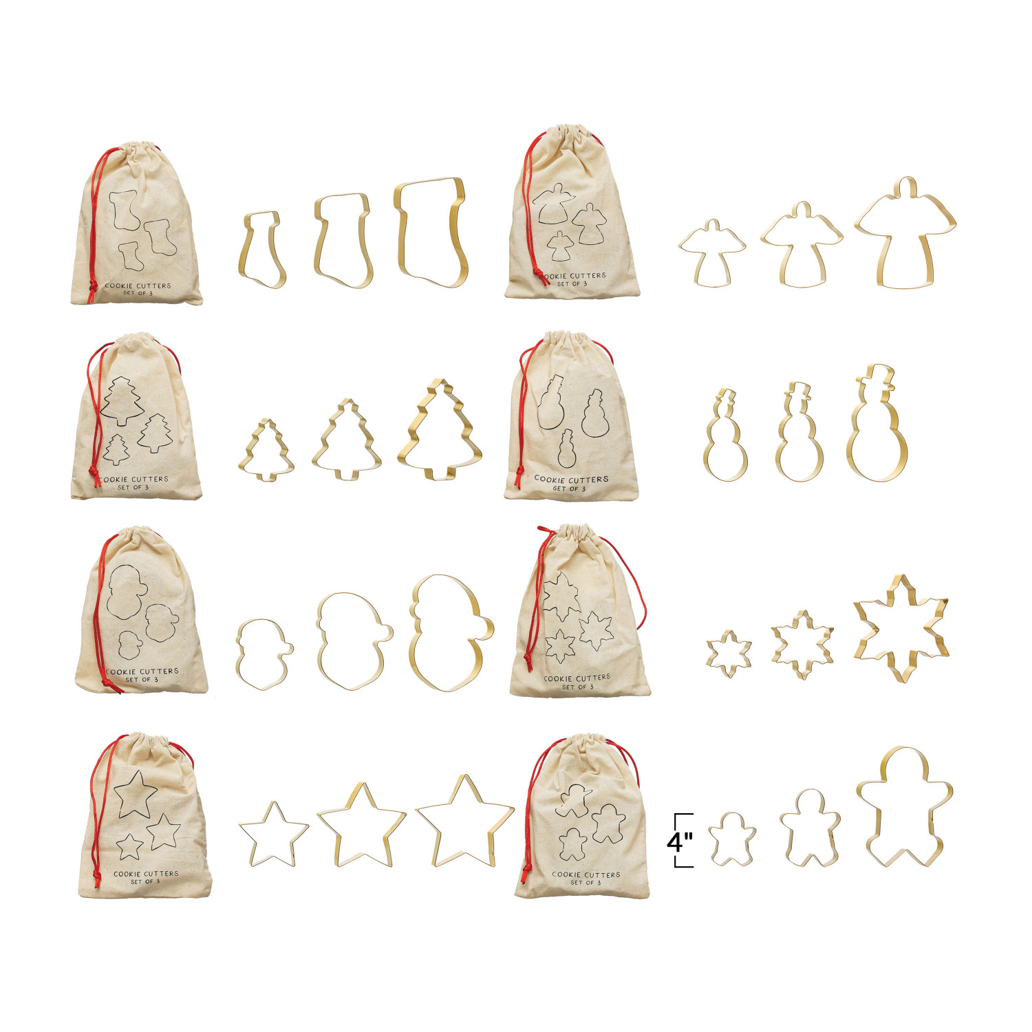 Stainless Steel Cookie Cutters in Printed Drawstring Bag, Gold Finish, Set of 3, 8 Styles