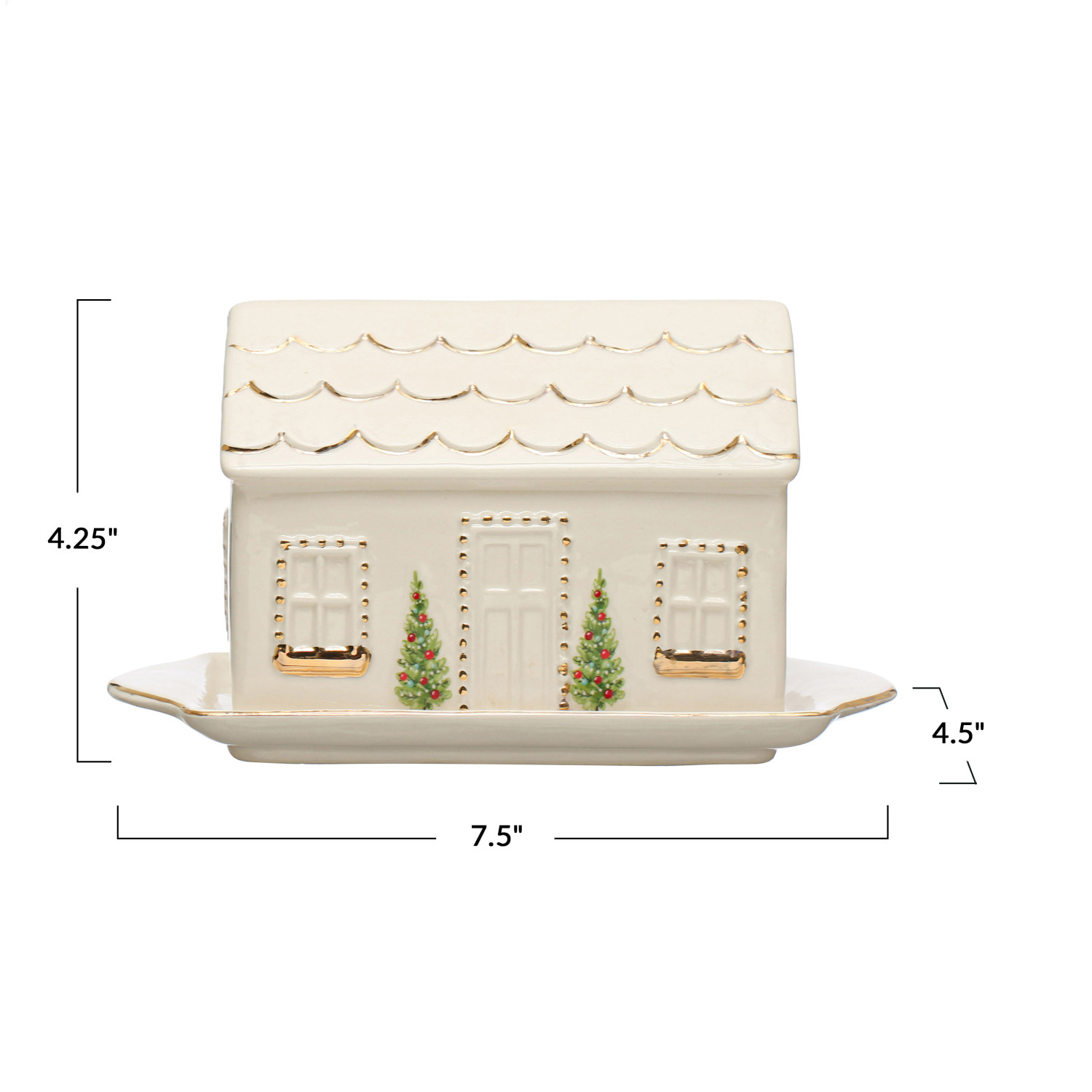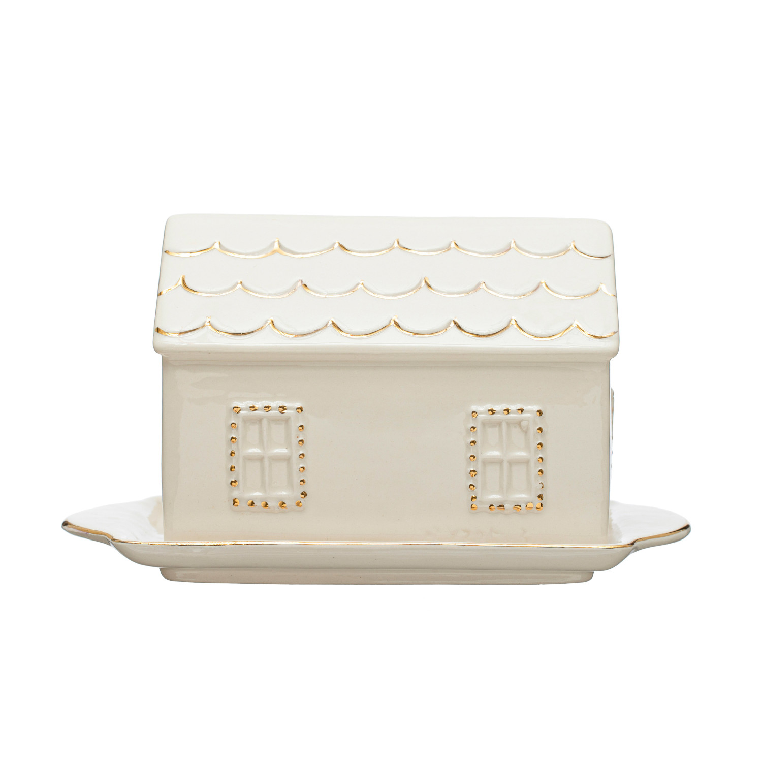 Catalog Name: 7-1/2"L x 4-1/2"W x 4-1/4"L Hand-Painted Stoneware House Butter Dish w/ Gold Electroplating, Multi Color ©