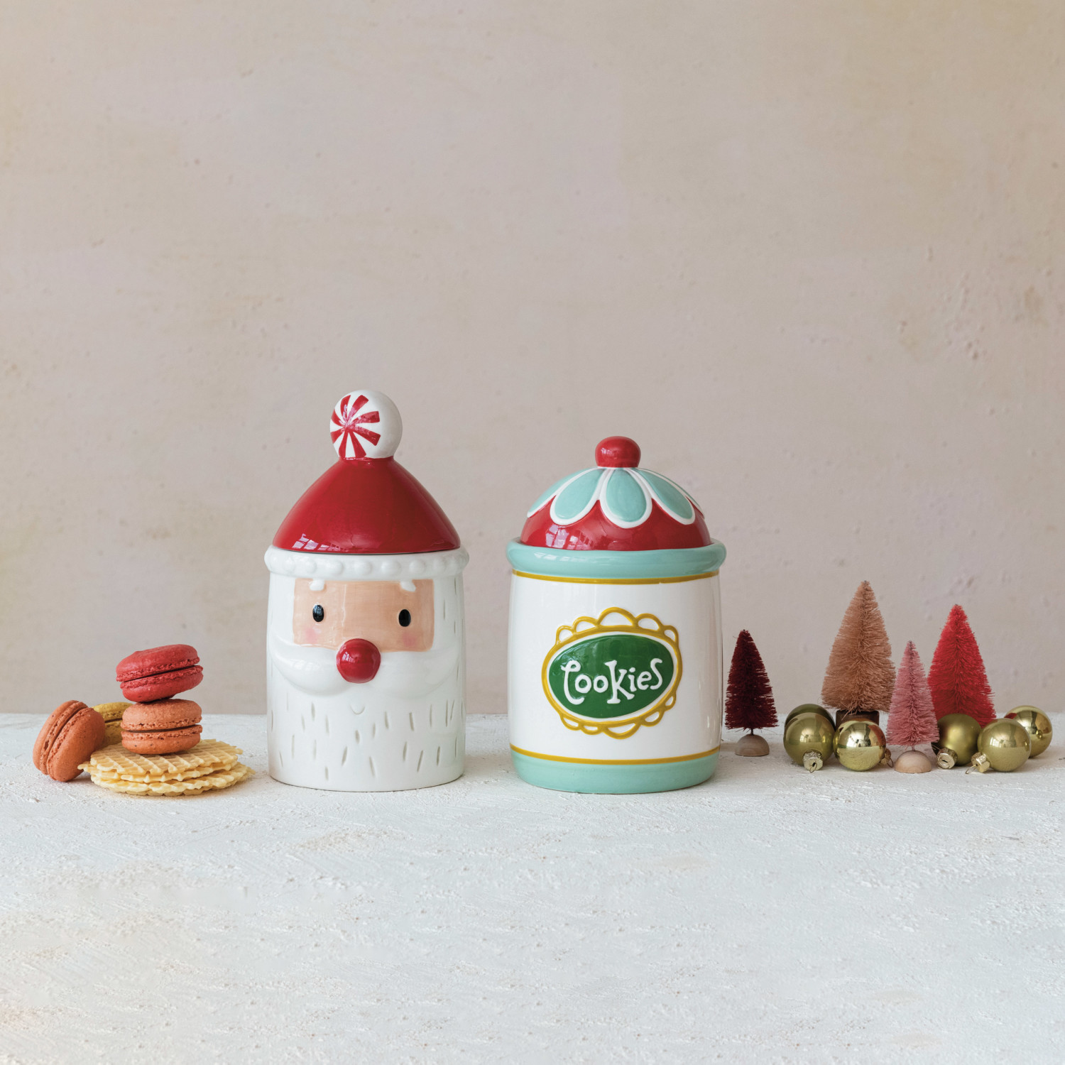 Hand-Painted Ceramic Santa Shaped Cookie Jar w/ Lid, Red & White