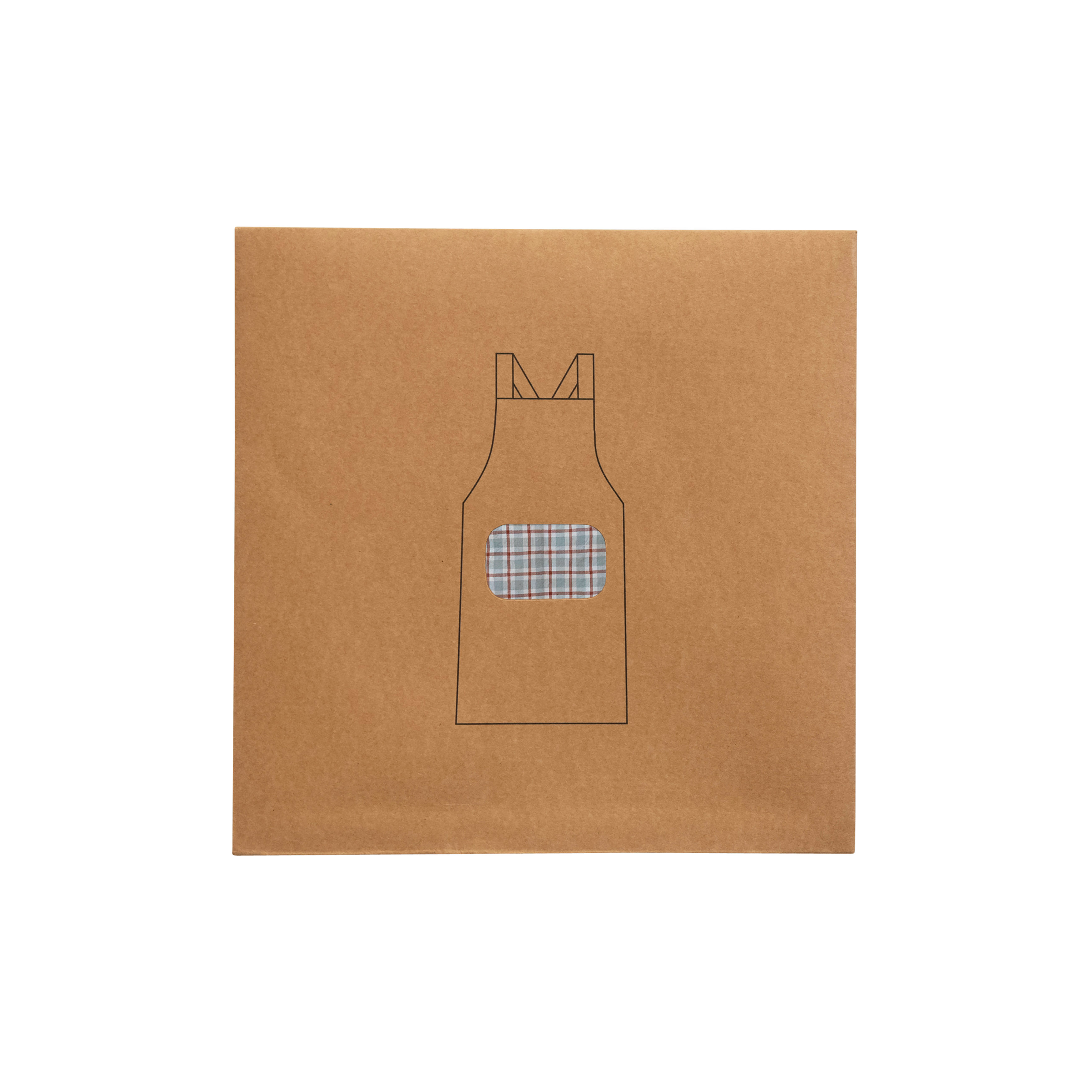 Catalog Name: 32"L x 28"W Woven Cotton Apron with Grid Pattern, Grey and Sienna Color