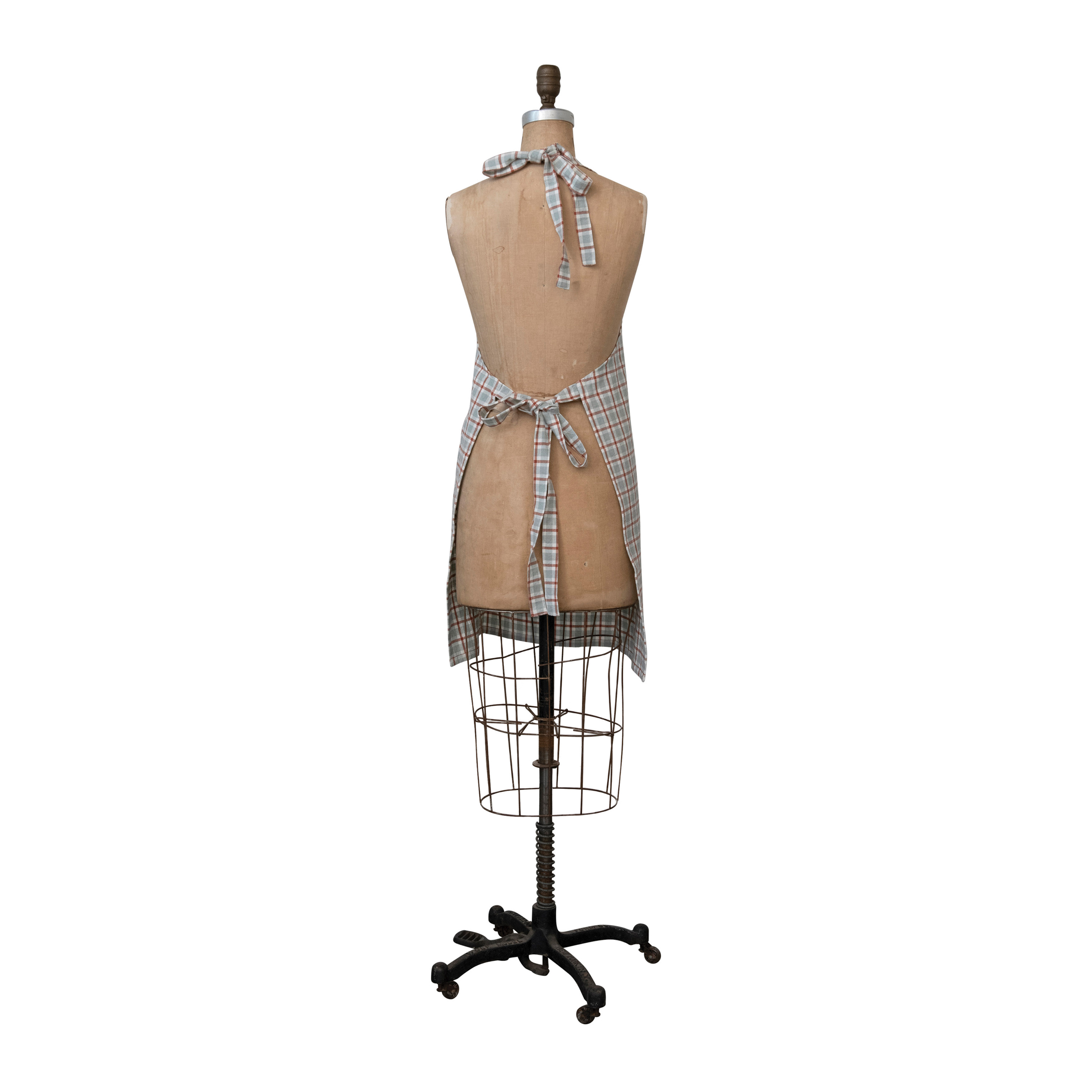 32"L x 28"W Woven Cotton Apron with Grid Pattern, Grey and Sienna Color