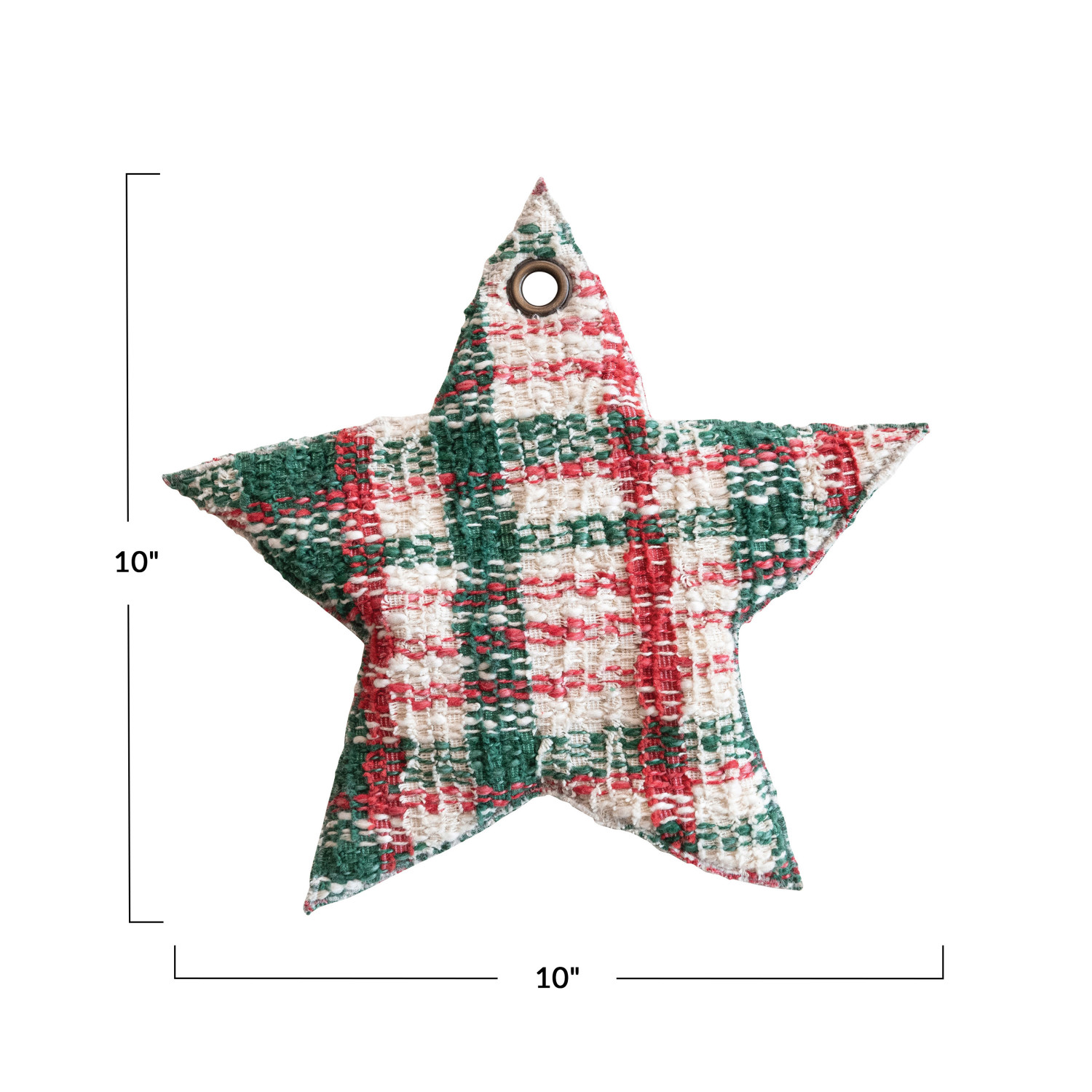 Catalog Name: 10"L x 10"W Woven Cotton Star Shaped Pot Holder, Cream Color, Green & Red Plaid