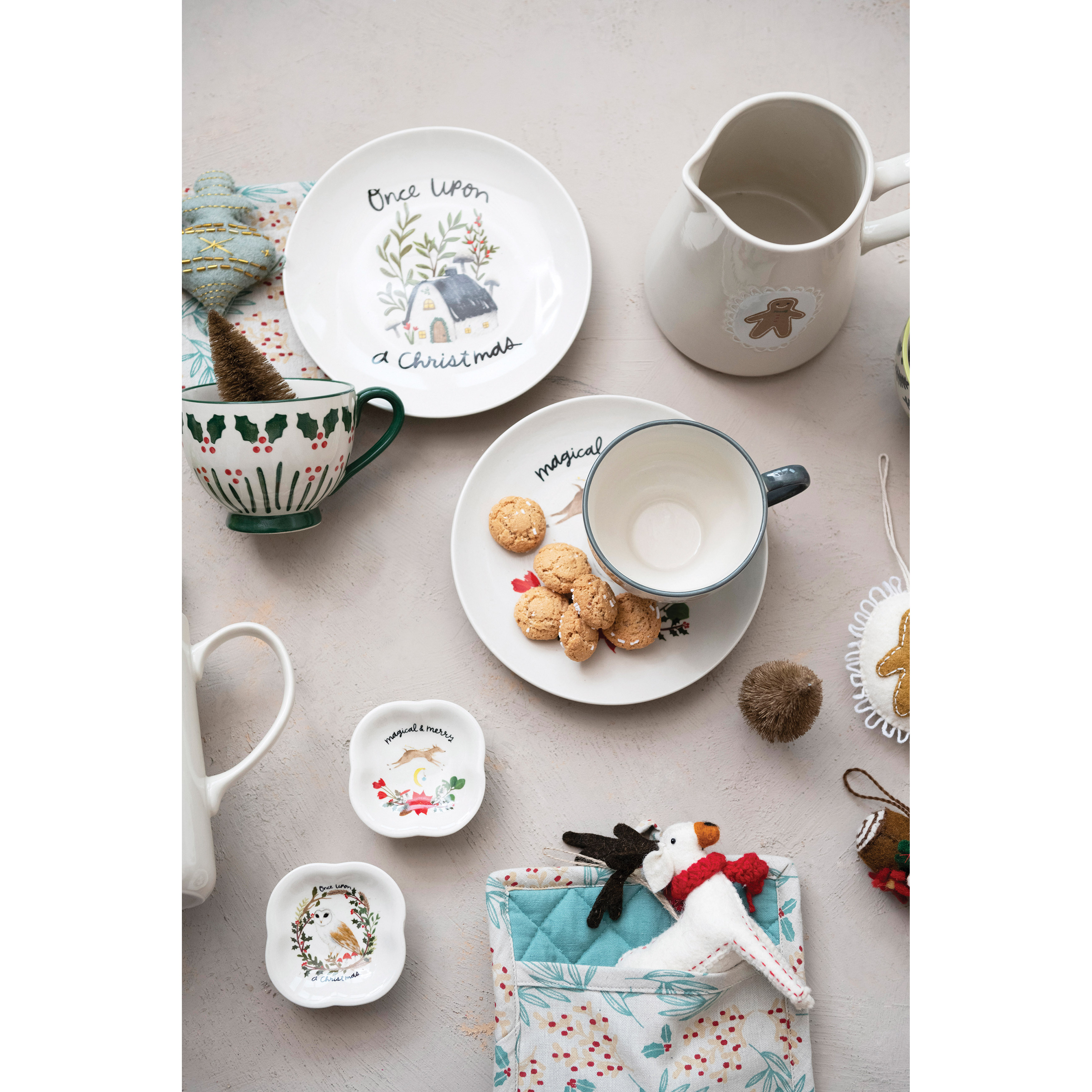 Stoneware Pedestal Dish with Forest Animal and Holiday Saying, 2 Styles