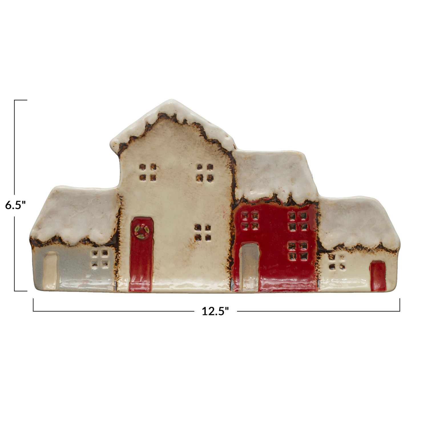 Hand-Painted Stoneware Houses Platter, Reactive Glaze, Multi Color (Each One Will Vary)