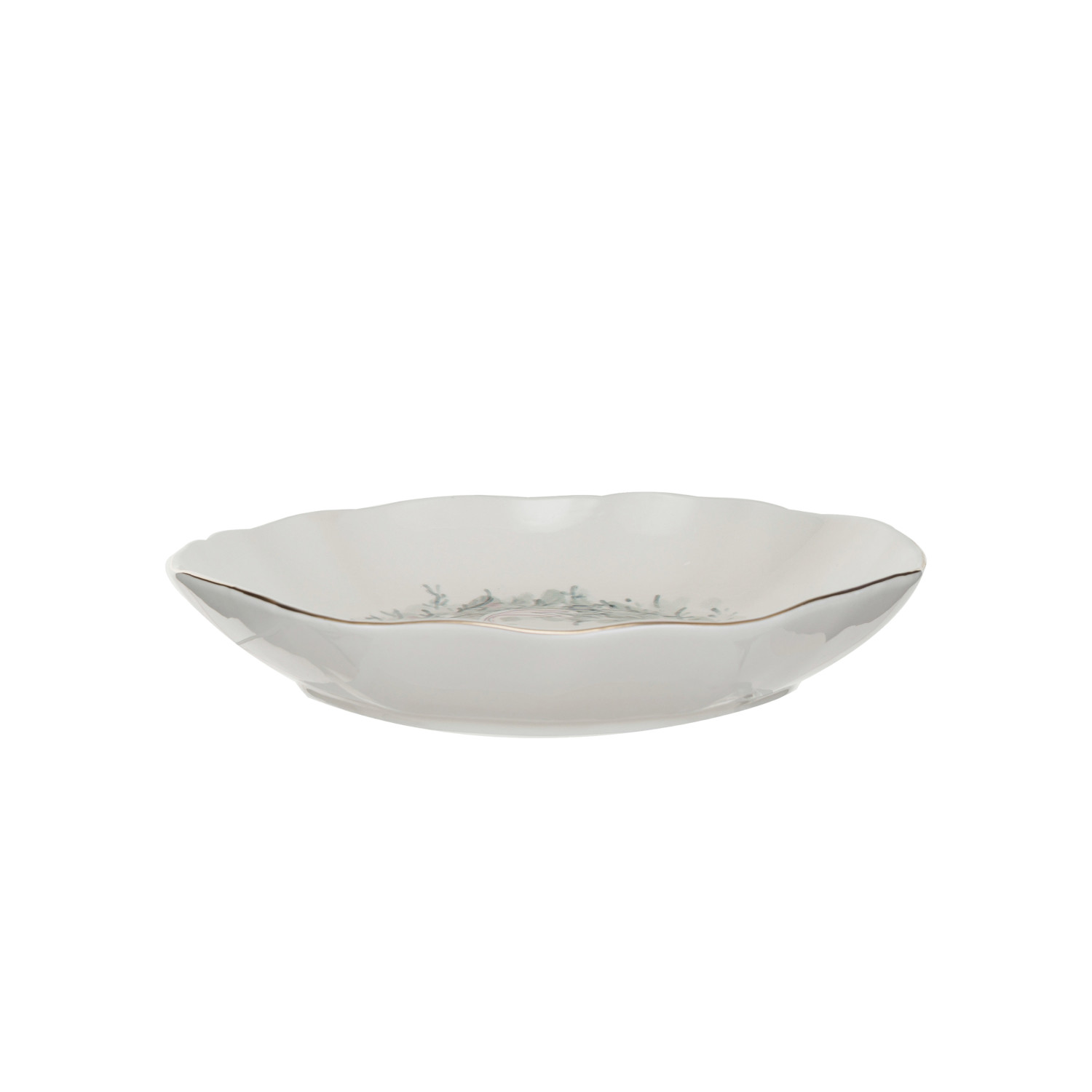 Catalog Name: 10-1/2" Round x 2"H Stoneware Bowl w/ Wreath & Gold Electroplating, Multi Color ©