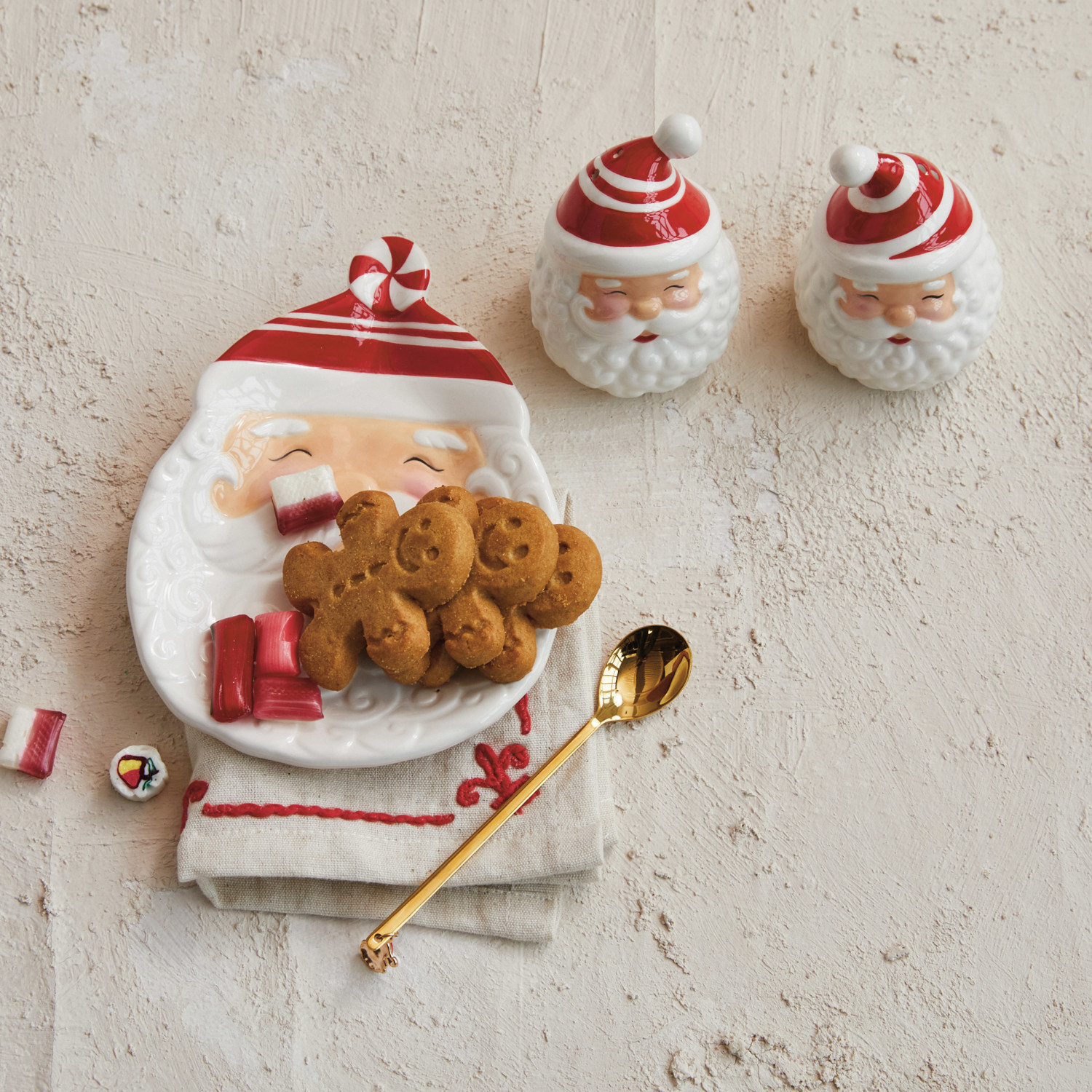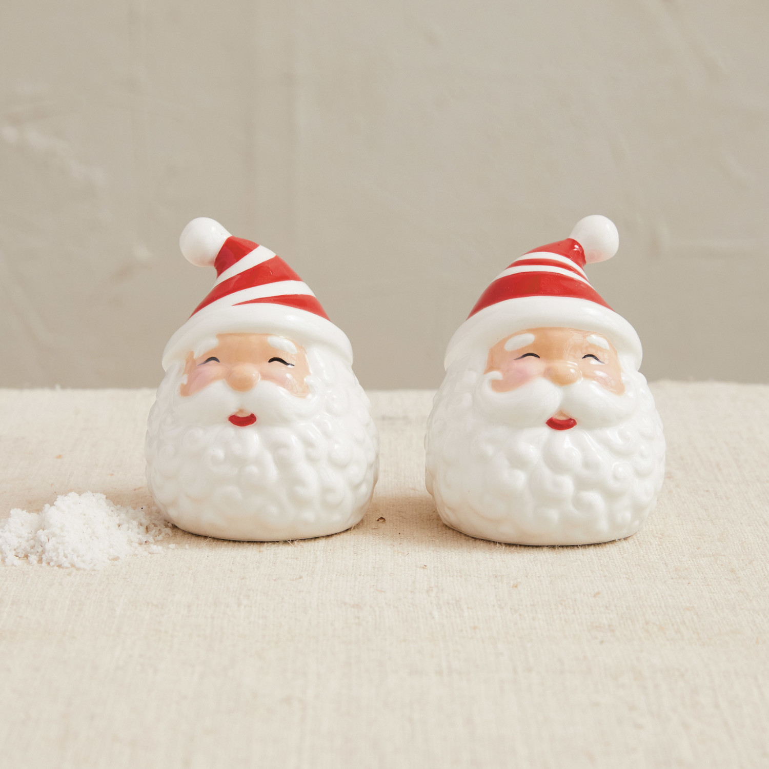 Hand-Painted Ceramic Santa Salt & Pepper Shakers, White & Red, Set of 2