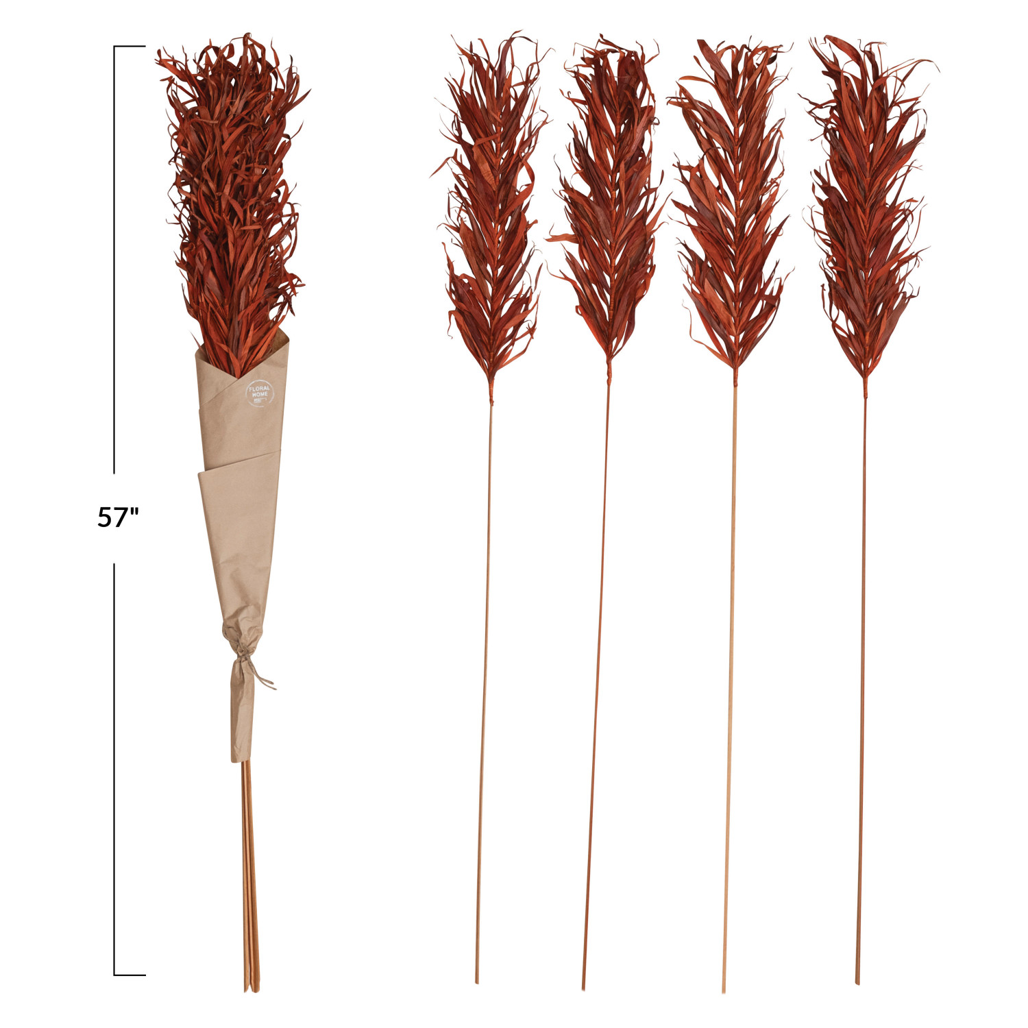 57"H Dried Natural Palm Grass Bunch, Orange Color (Contains 4 Pieces)