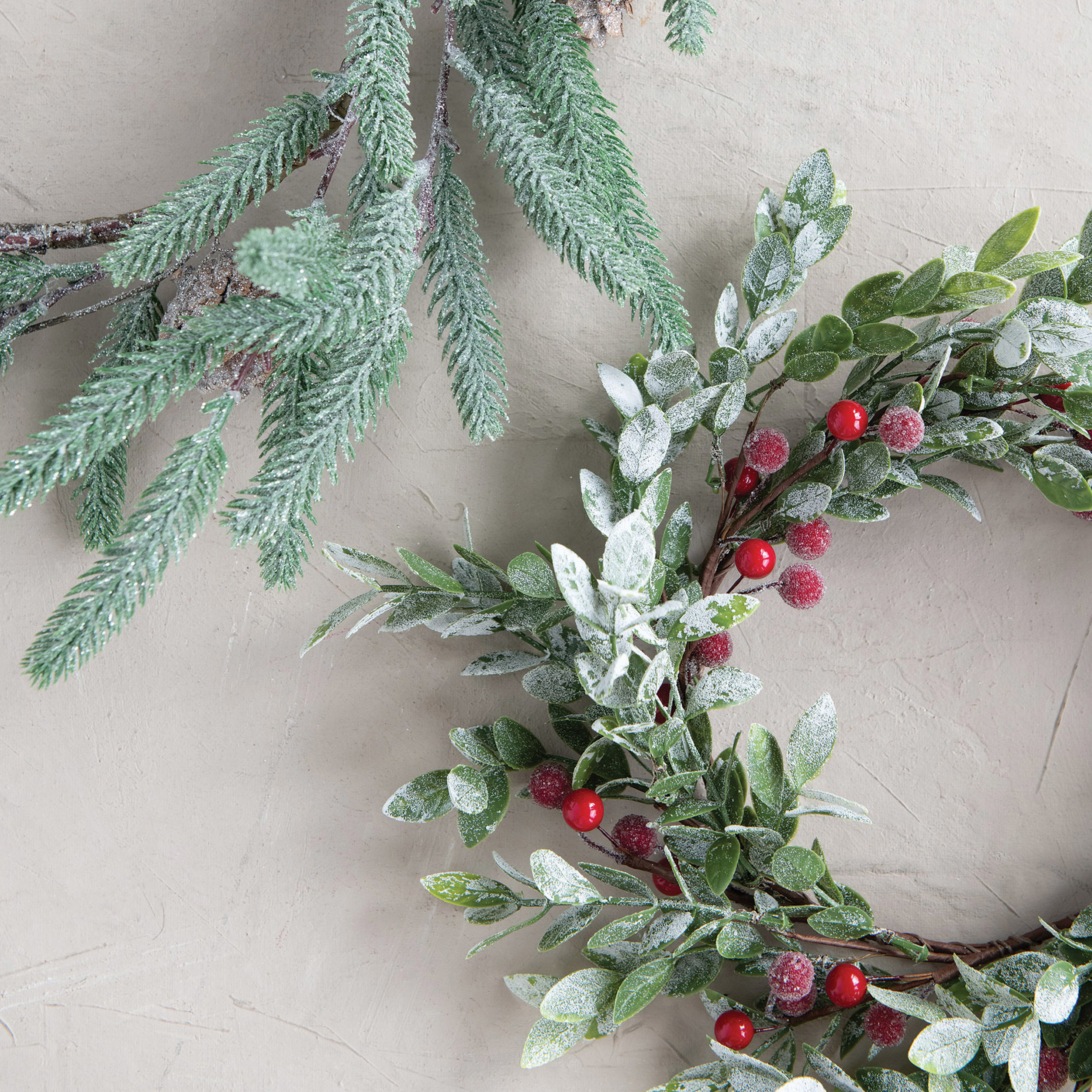 Faux Leaves and Berry Wreath with Frost Finish