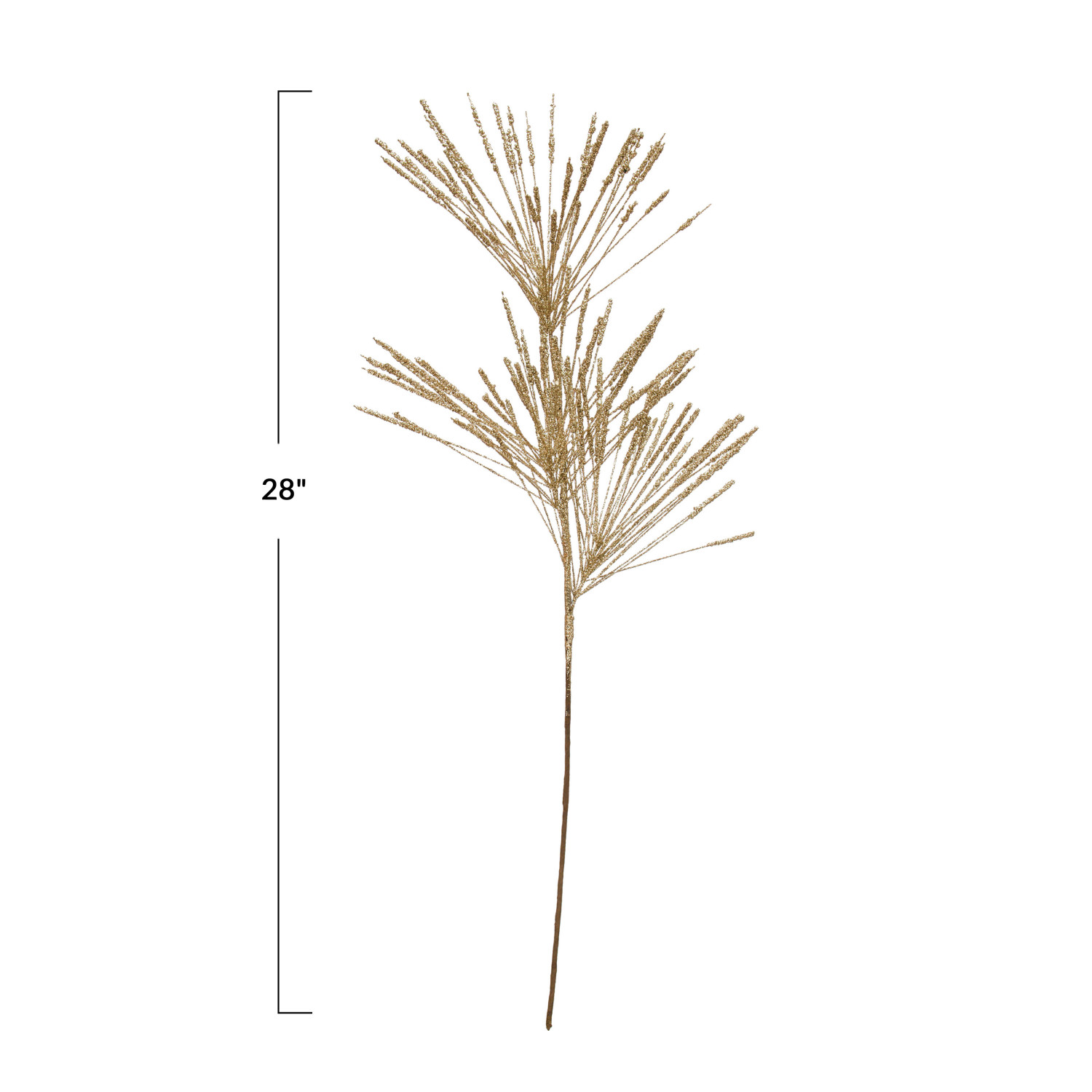Catalog Name: 28"H Faux Long Needle Pine Stem w/ Glitter, Champagne Finish