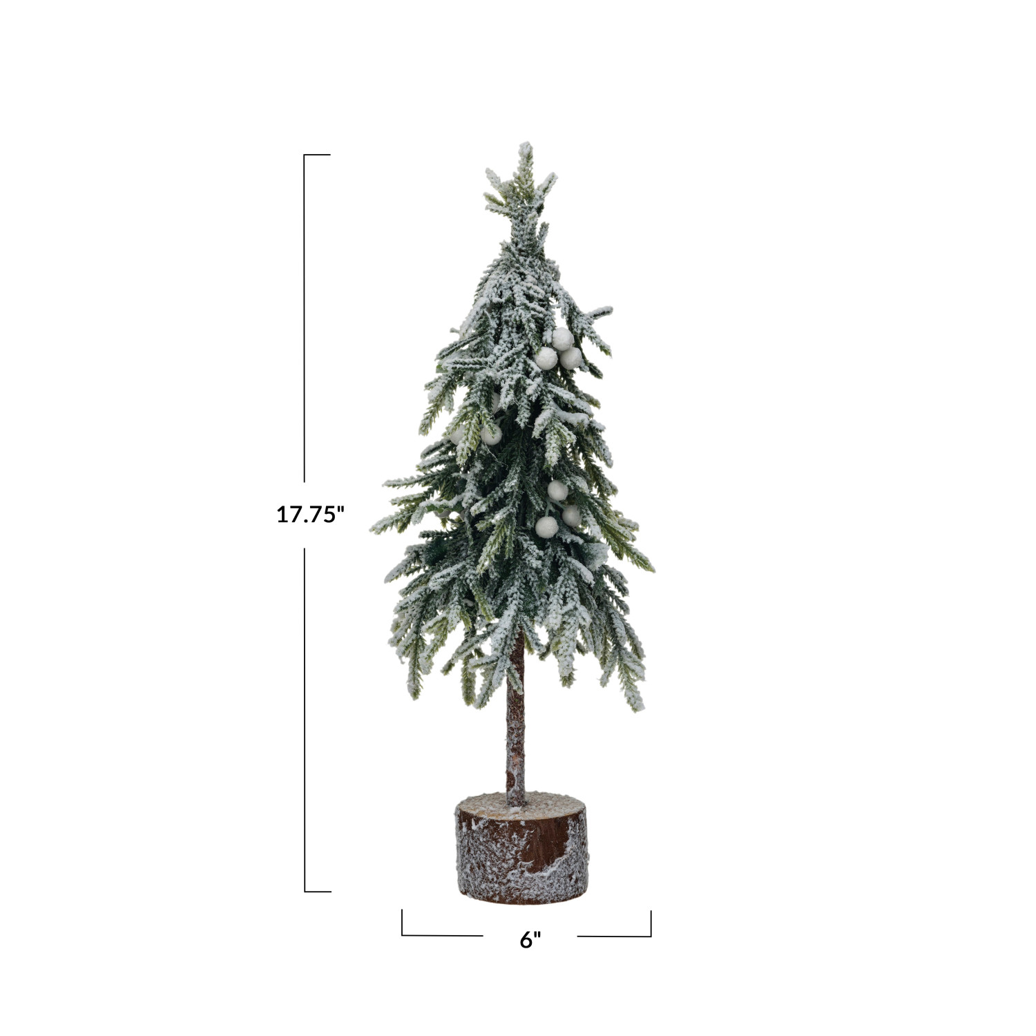 Catalog Name: 6" Round x 17-3/4"H Faux Fir Tree w/ Natural Wood Slice Base, Snow Finish