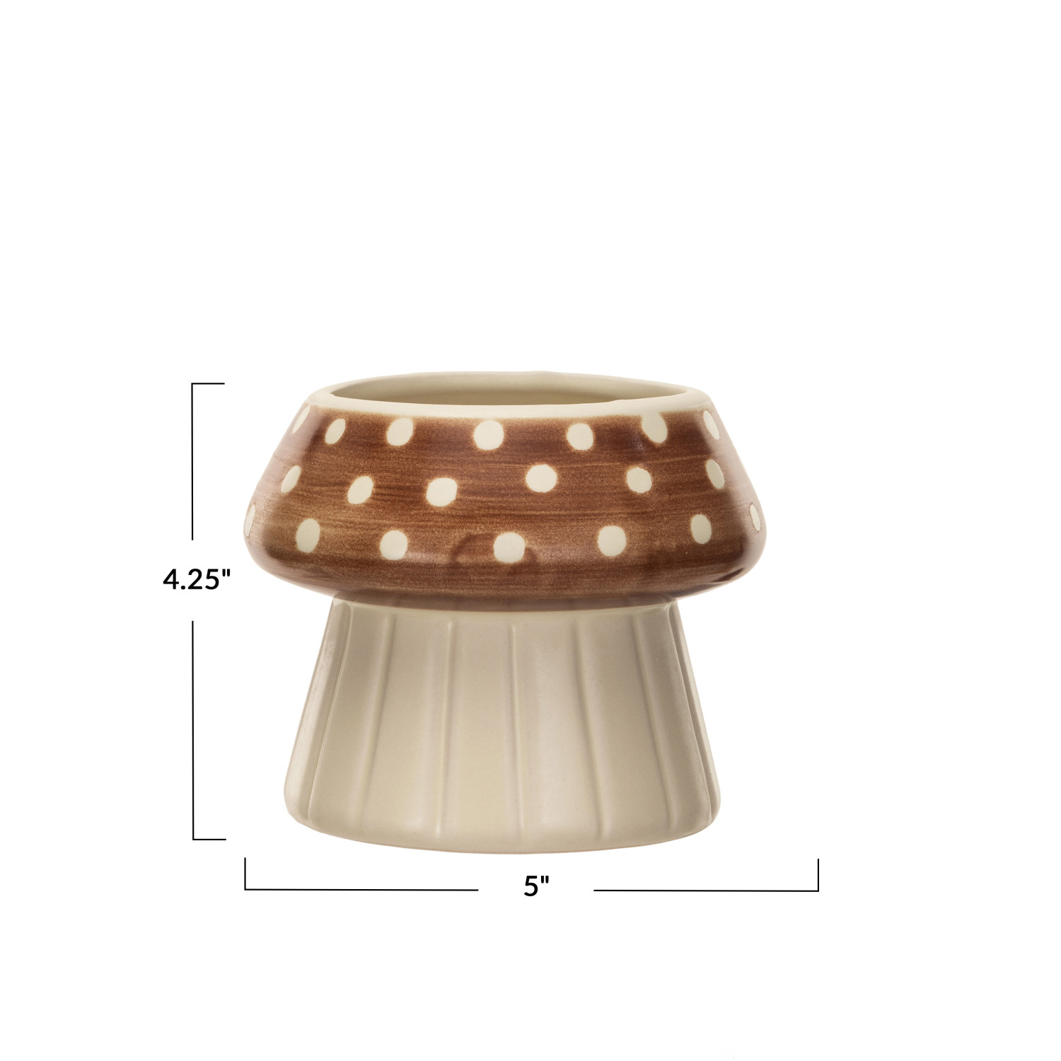 Catalog Name: 5" Round x 4-1/4"H Debossed Stoneware Mushroom Shaped Planter, Cream Color & Brown
