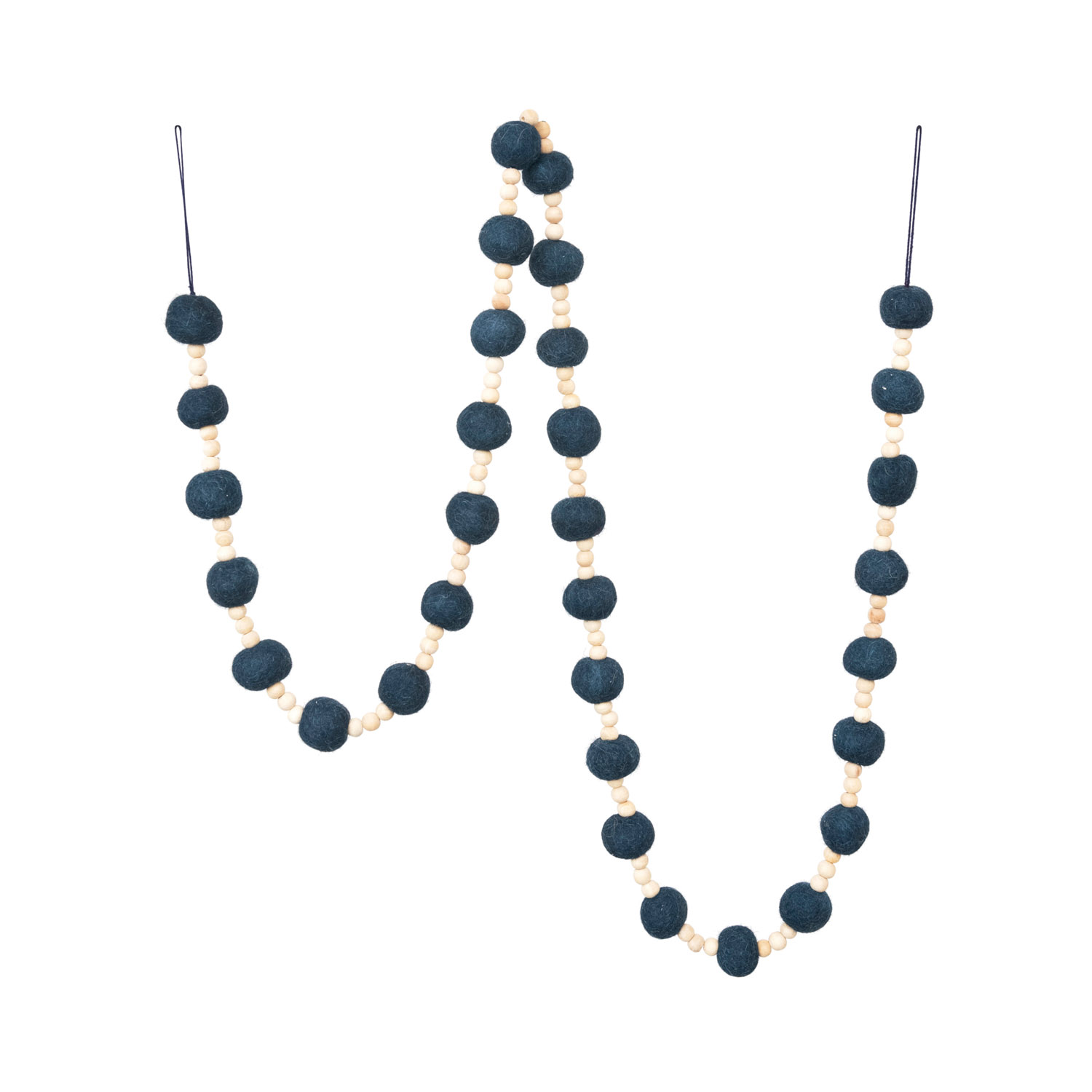 Catalog Name: 72"L Wool Felt Ball Garland with Wood Beads, Natural and Blue