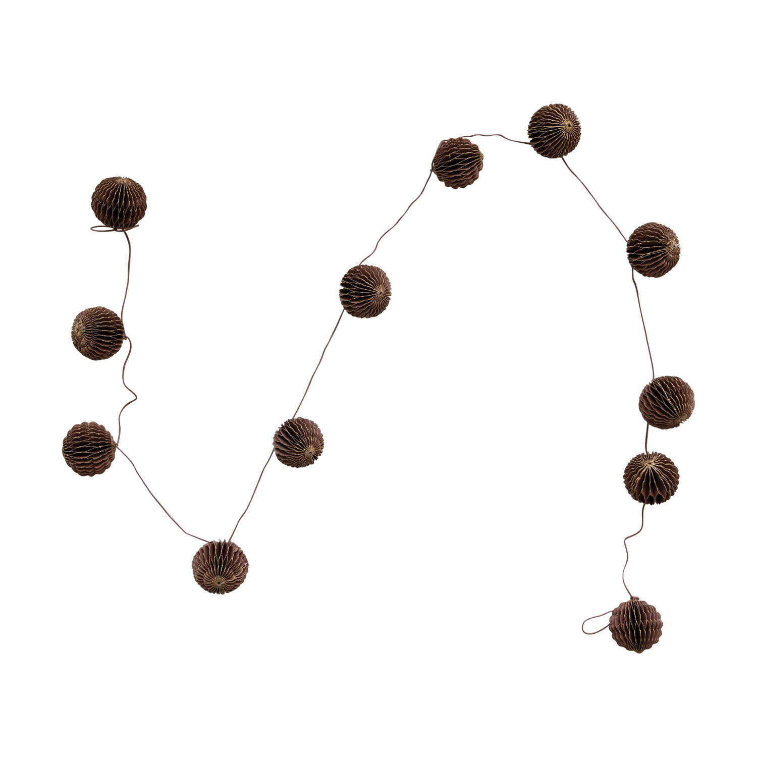 This festive garland features intricately handcrafted recycled paper honeycomb balls finished with gold glitter. Add a touch of festive whimsy to any space with our enchanting collection of garlands, including stunning glass, sleek metal, and delightful mixed-material options, all expertly crafted to create a merry and bright atmosphere.
