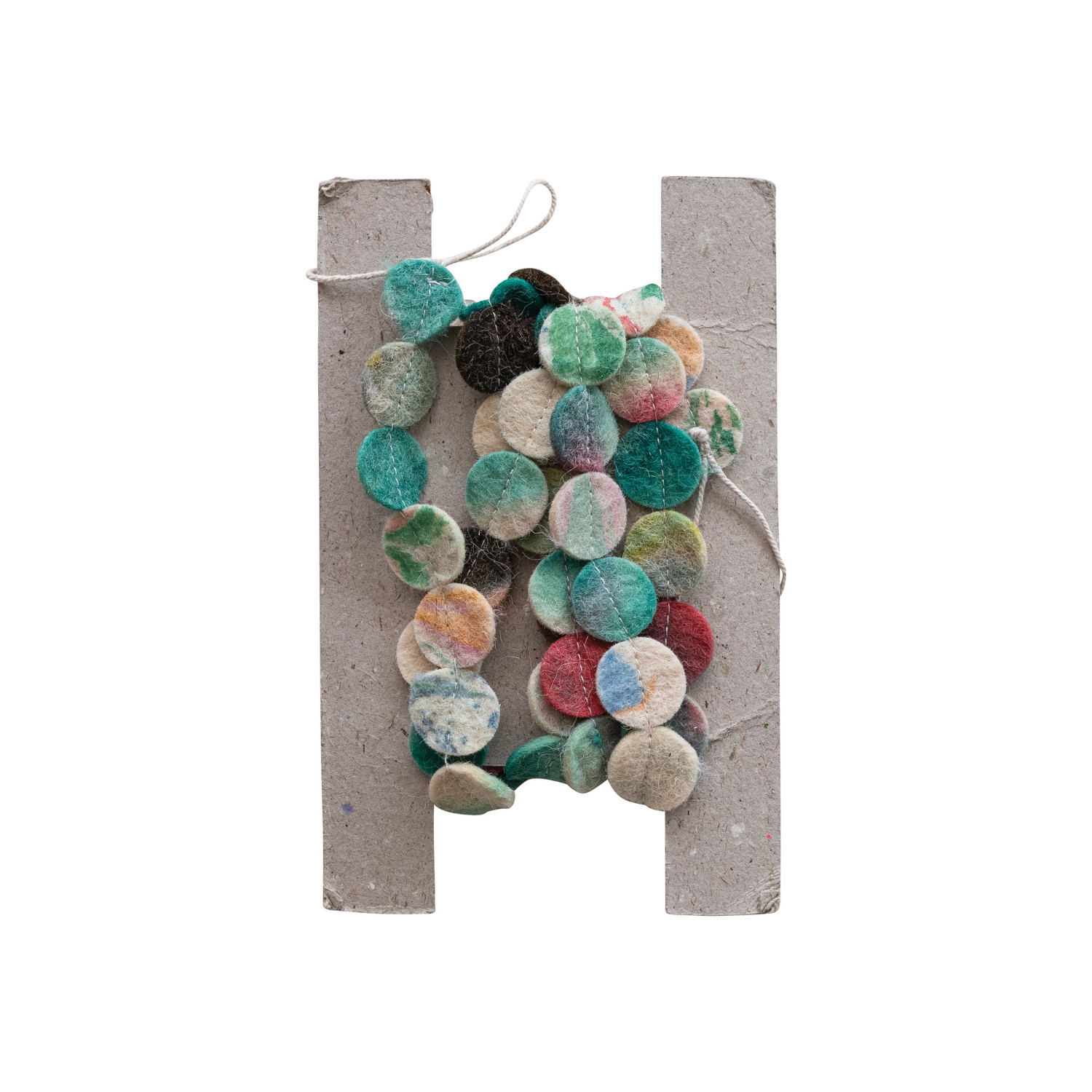 Catalog Name: 72"L x 1"H Handmade Wool Felt Circle Garland, Marbled Multi Color (Each One Will Vary)