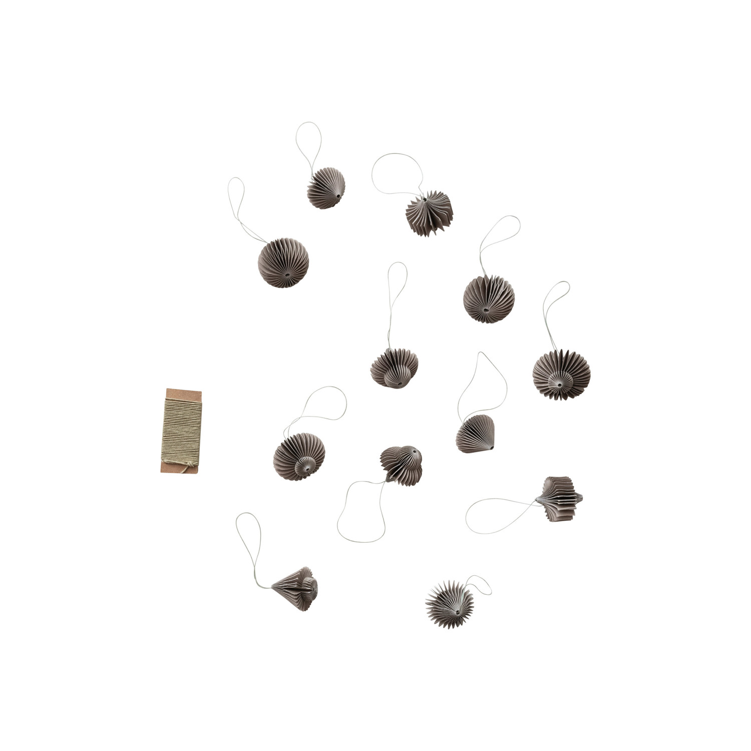 Catalog Name: 1-1/2"H Recycled Paper Folding Honeycomb Ornaments w/ 90"L DIY Garland String, Grey, Boxed Set of 13