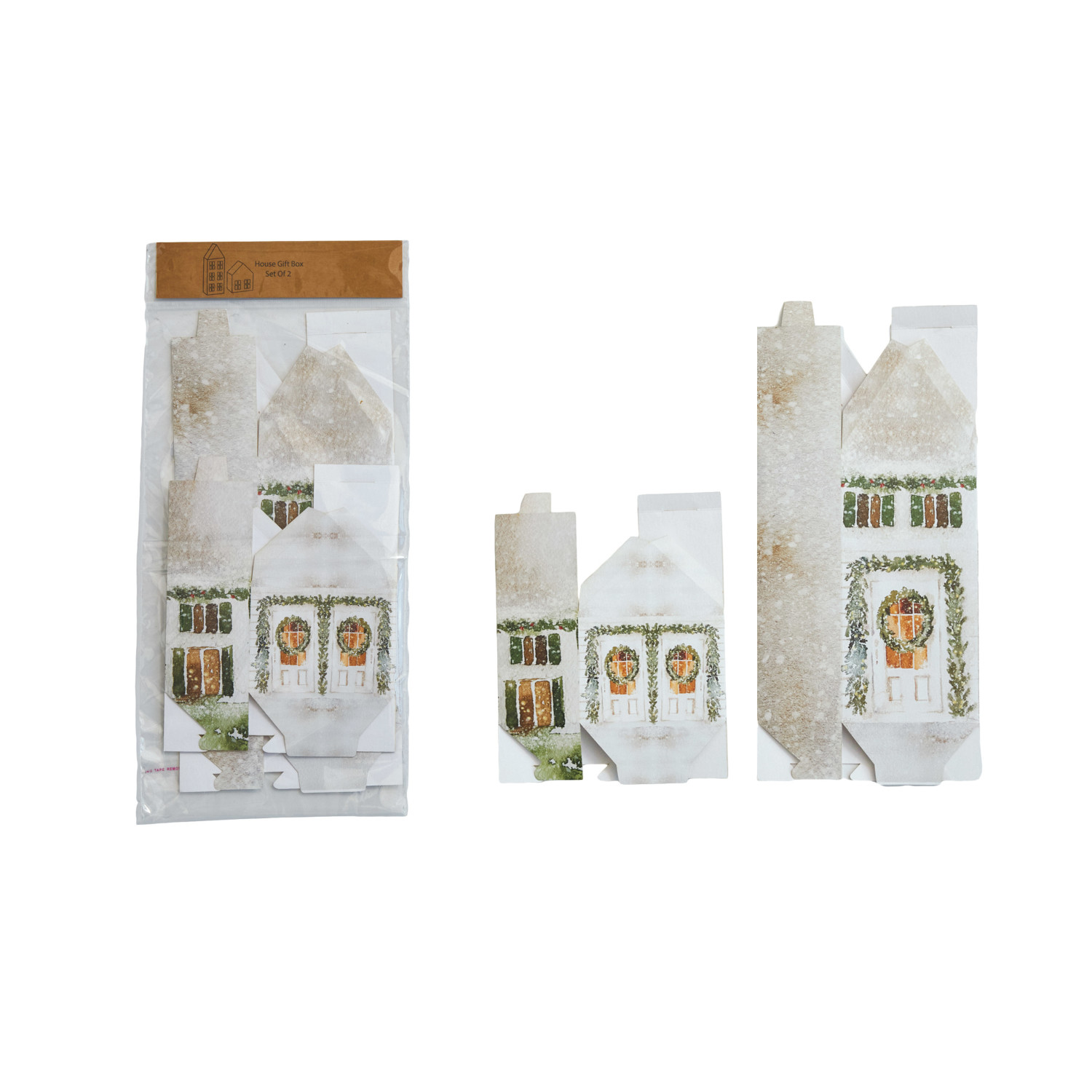Printed Recycled Paper House Shaped Gift Boxes, Set of 2