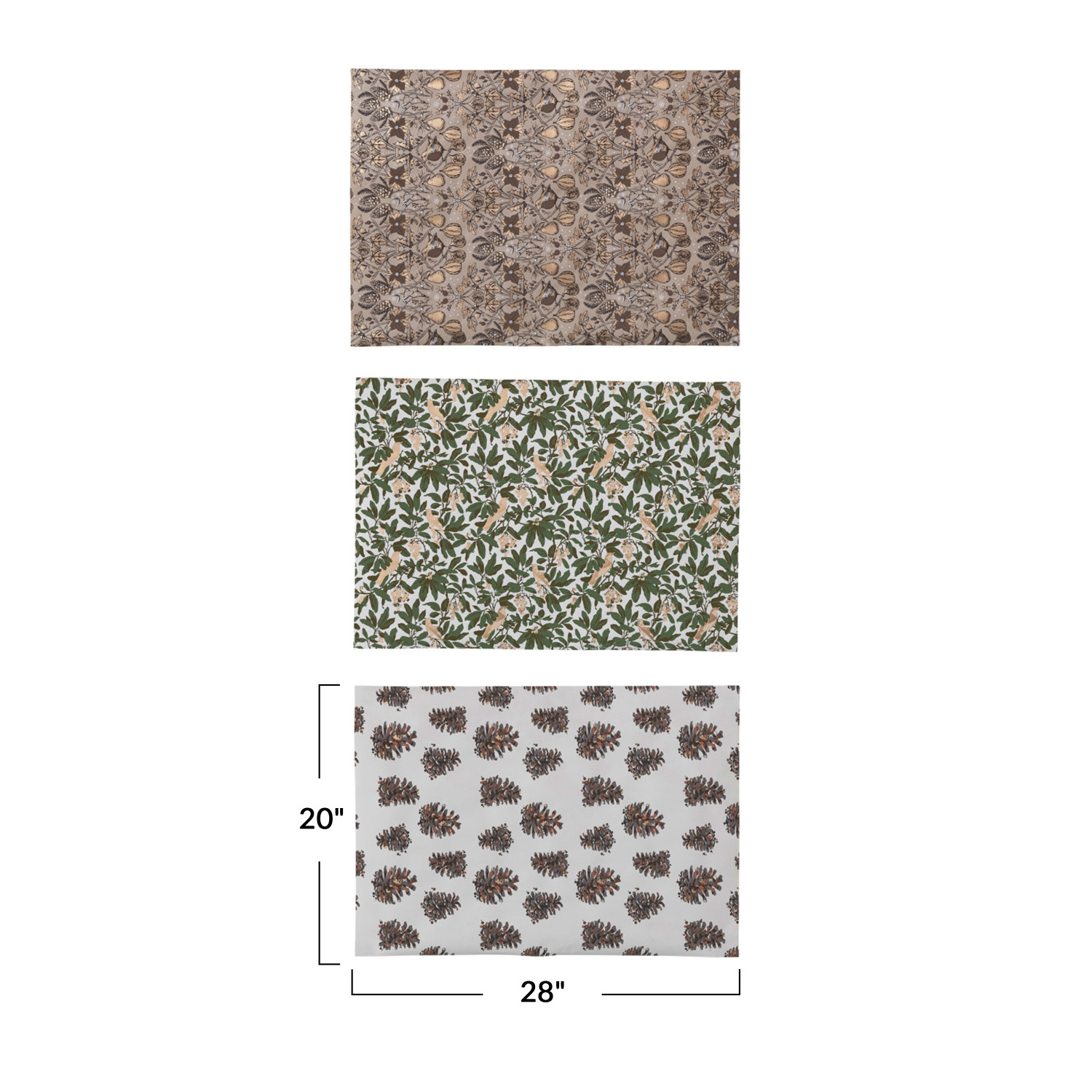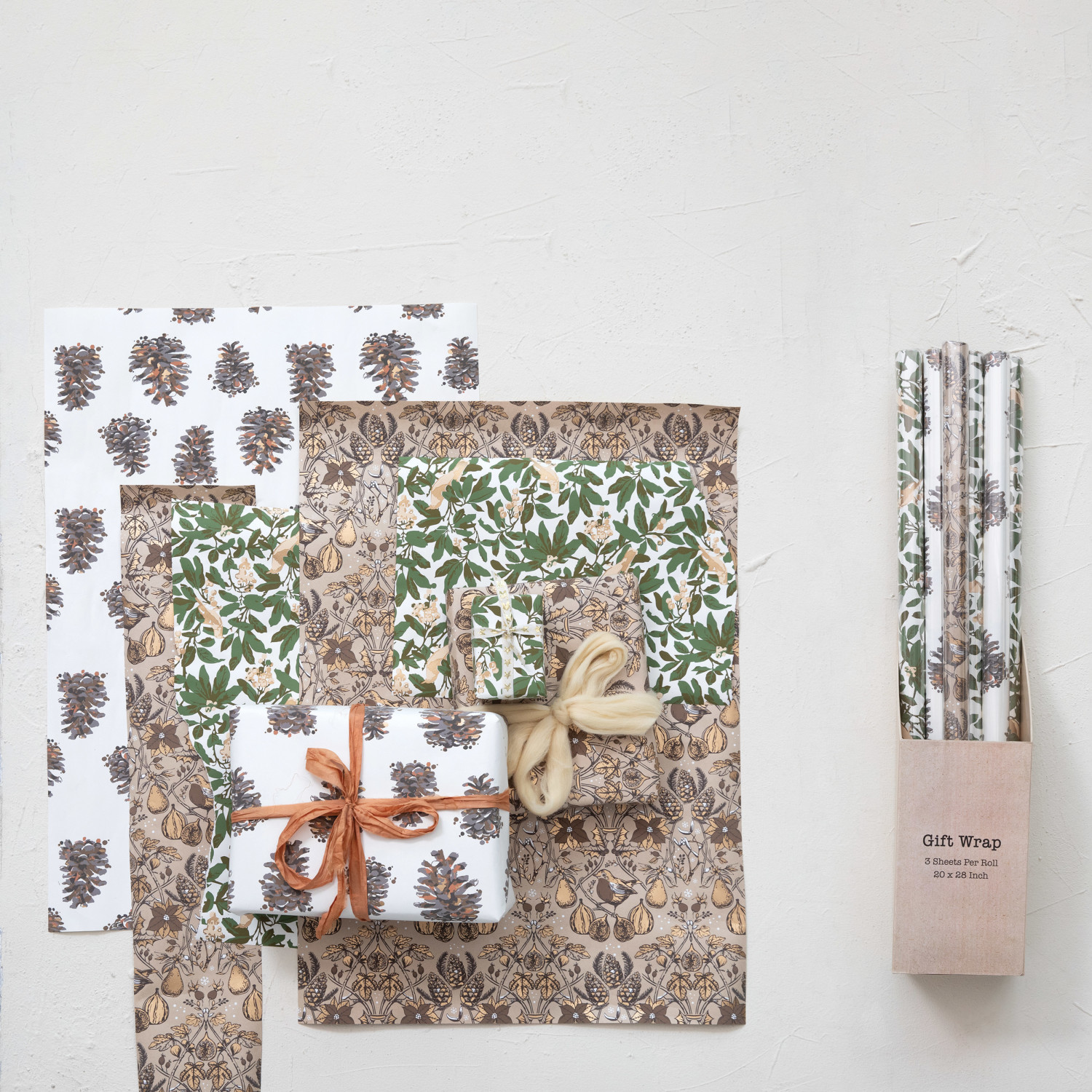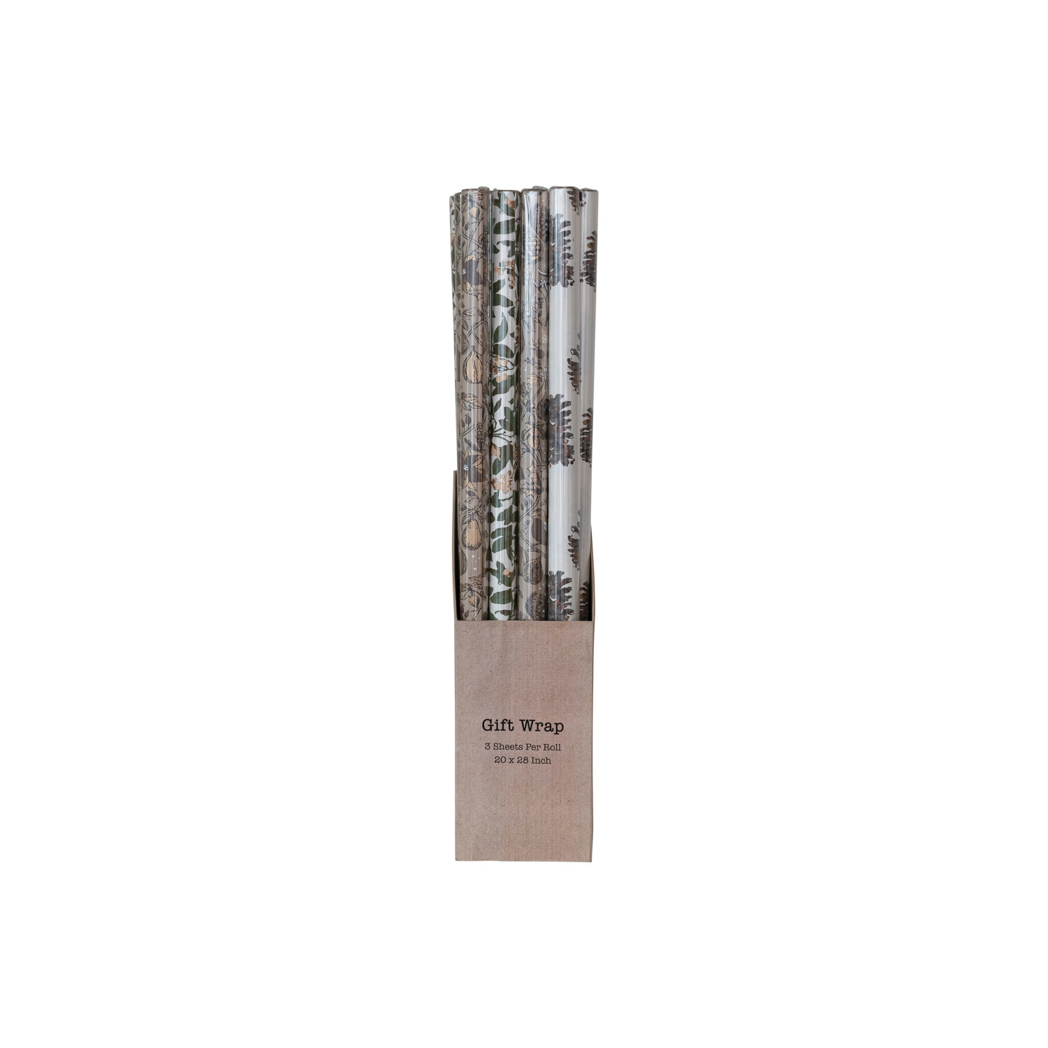 Wrapping Paper Sheets w/ Patterns, 3 Styles, Set of 12 Rolls in Kraft Display Box