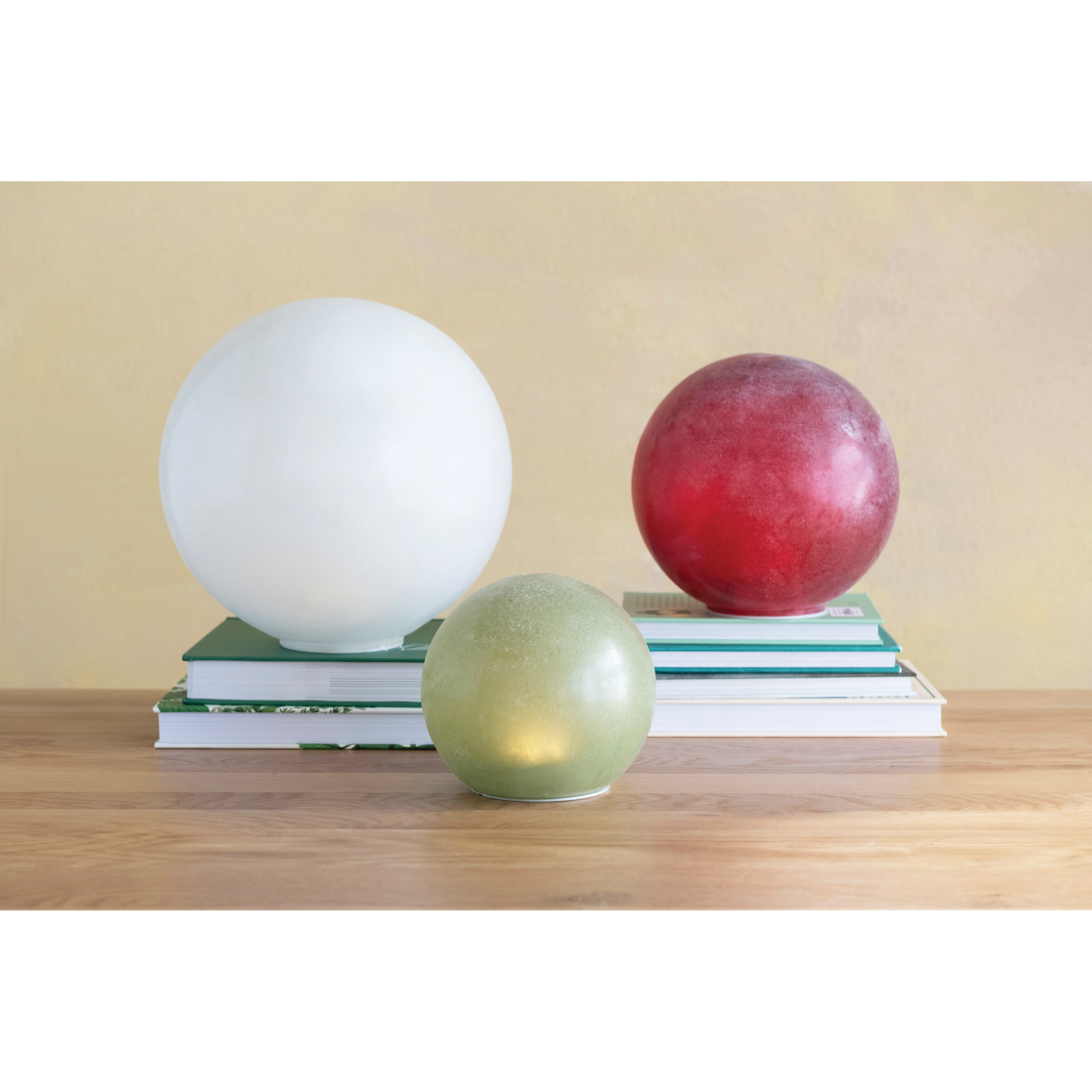 Catalog Name: 6" Round Frosted Glass Globe with LED Light, Green (Requires 3-AA Batteries)