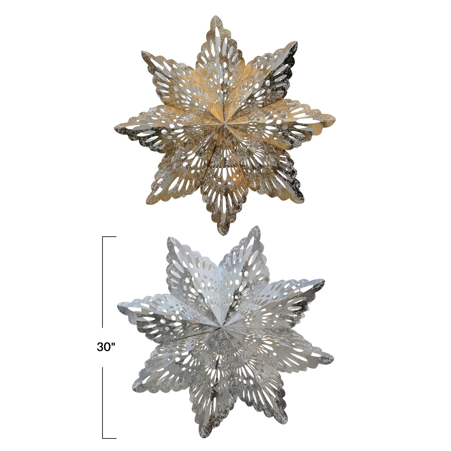 Catalog Name: 30"H Handmade Recycled Paper Folding Snowflake Ornament w/ LED Light String, 2 Colors (Requires 1-CR22 Battery)