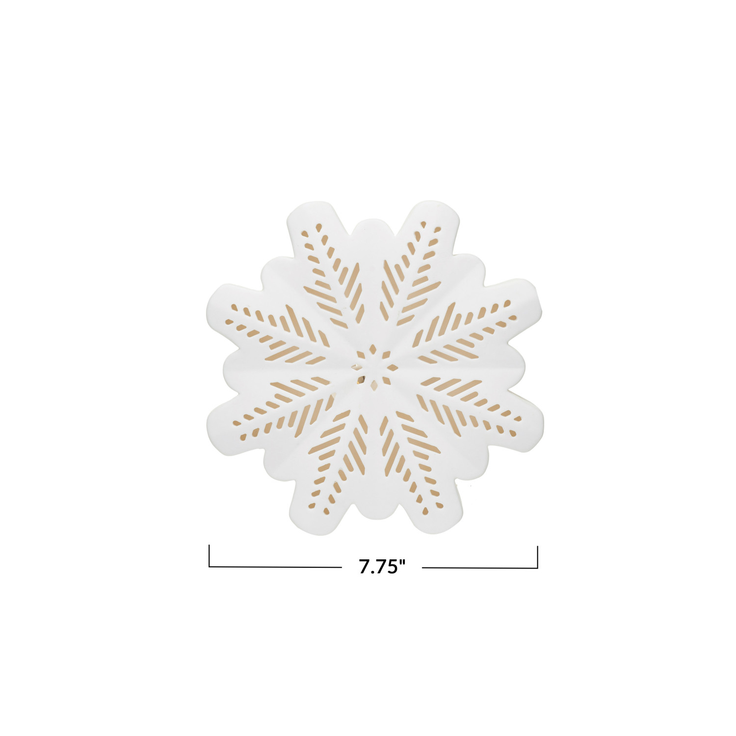 Catalog Name: 7-3/4"L x 7-3/4"H Stoneware Bisque LED Snowflake w/ Cut-Outs, White (Batteries Included)