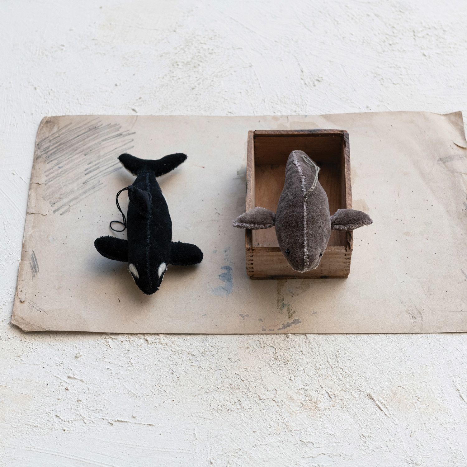 Handmade Cotton Velvet Whale Ornament, 2 Styles