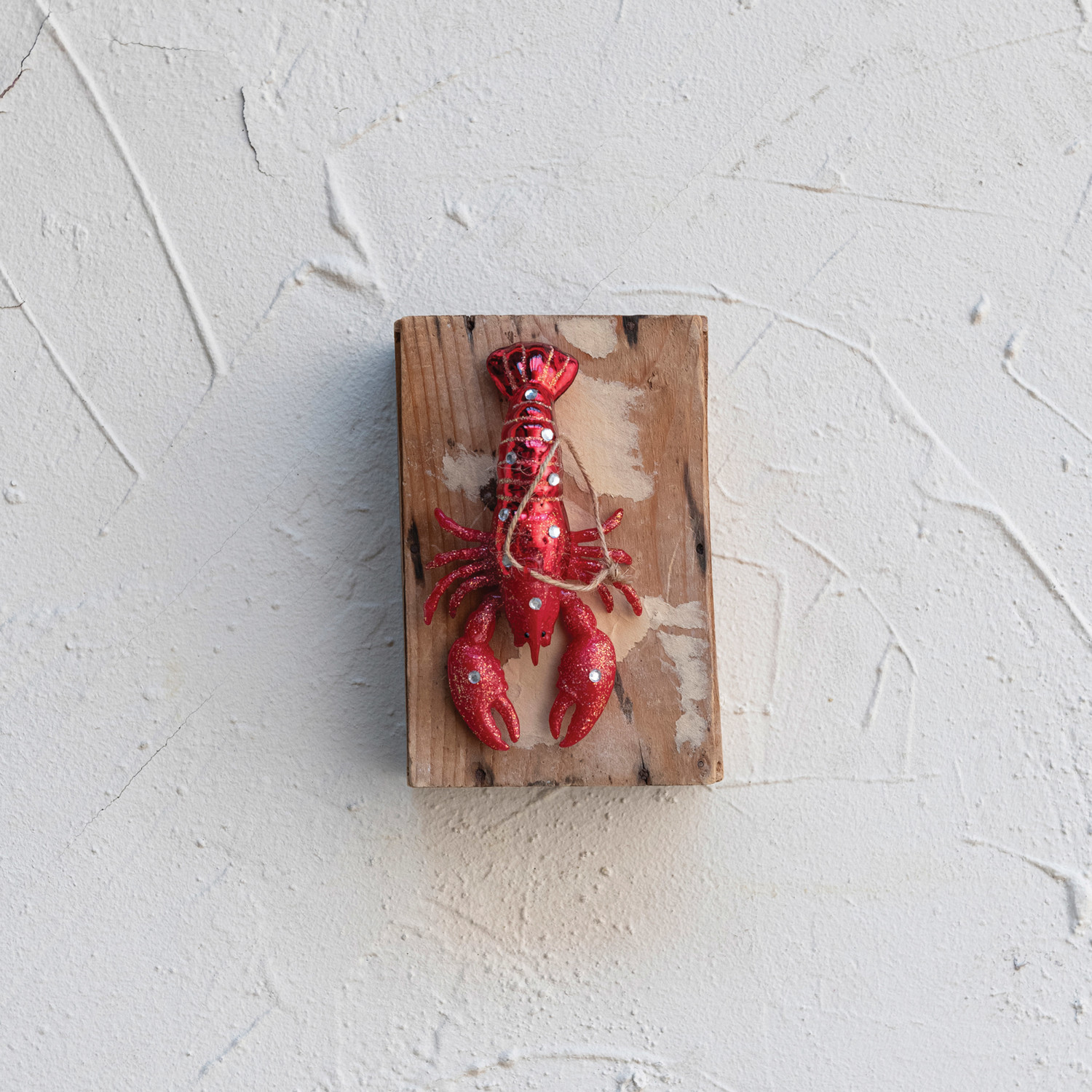Glass Lobster Ornament w/ Glitter & Jewels, Red