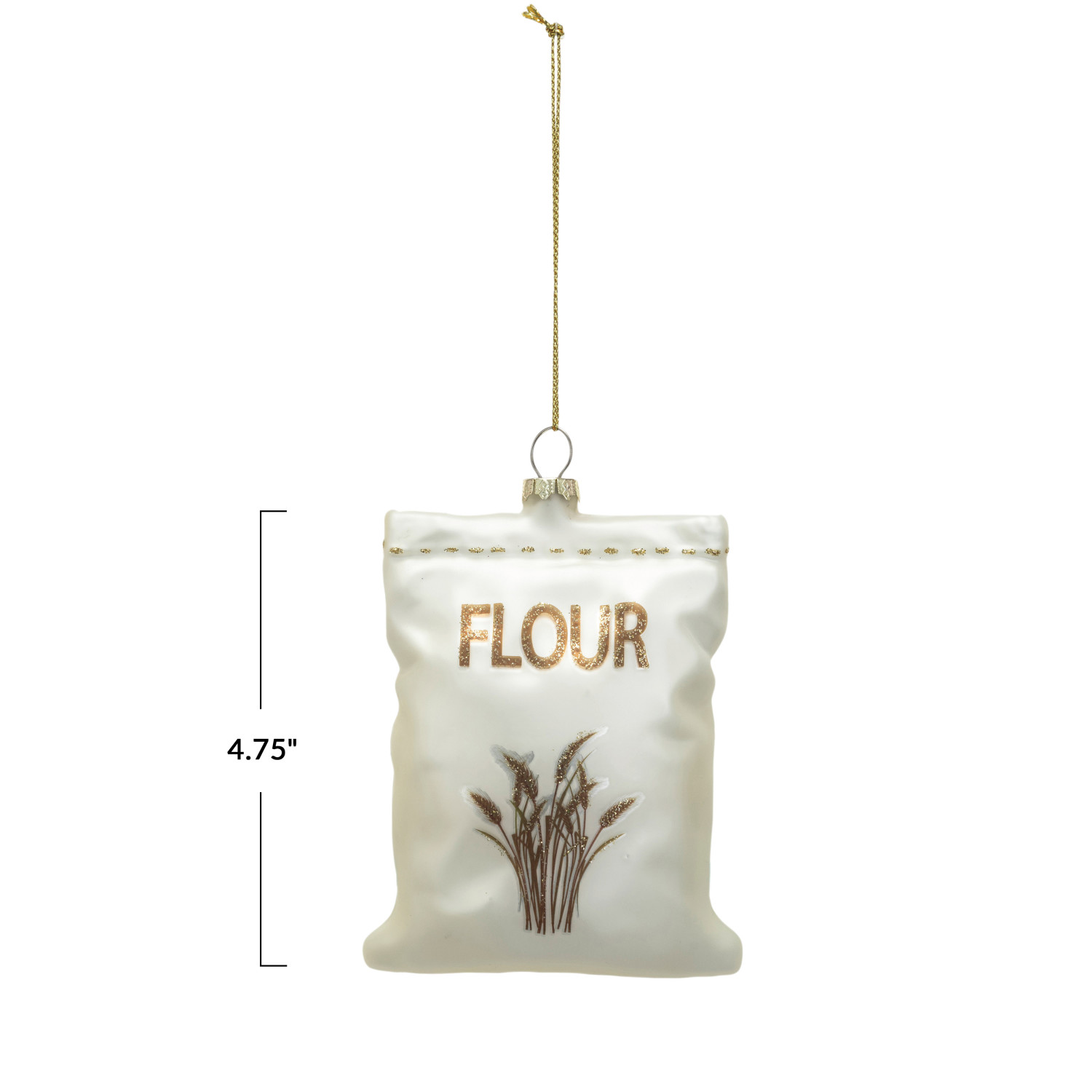 Catalog Name: 4-3/4"H Hand-Painted Glass "Flour" Sack Ornament w/ Glitter, White & Gold Finish