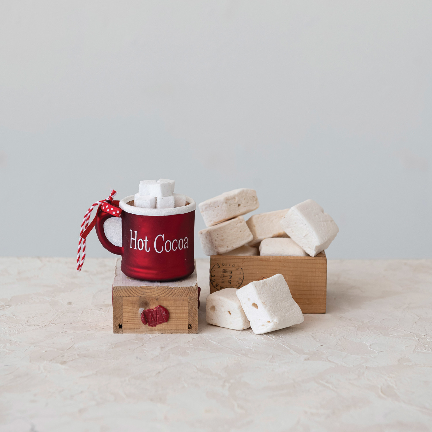 This ornament captures the essence of holiday relaxation—a glass rendition of a hot cocoa mug, complete with a whimsical red and white polka dot ribbon. The words "Hot Cocoa" are emblazoned on its side, inviting memories of sipping the beloved drink on chilly evenings. Measuring 3.75 inches long and 3.25 inches high, it's a sweet reminder of the simple pleasures that make the holiday season so special. Whether it's part of a festive display or a gift for a cocoa lover, this ornament is sure to spread cheer. This is a perfect choice for anyone who loves whimsical and adorable holiday decor. A glass hot cocoa mug ornament with a charming red and white polka dot ribbon, invoking the cozy comfort of winter days. An ornament that adds a sweet touch of holiday warmth to the decor, perfect for those who cherish the joy of the season. Perfect for nestling among the branches of the Christmas tree or as a delightful addition to a holiday table setting.