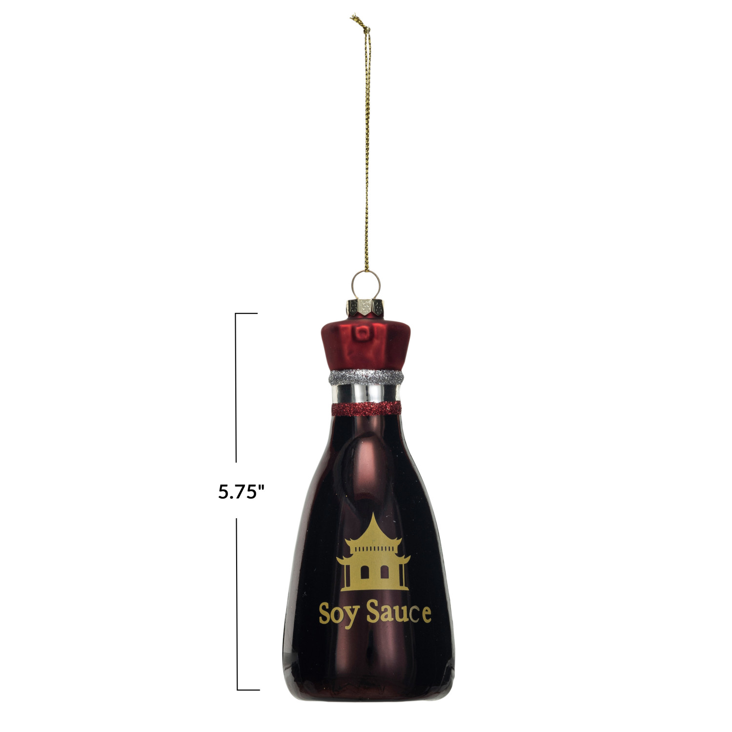 Catalog Name: 5-3/4"H Hand-Painted Glass "Soy Sauce" Bottle Ornament w/ Glitter, Multi Color