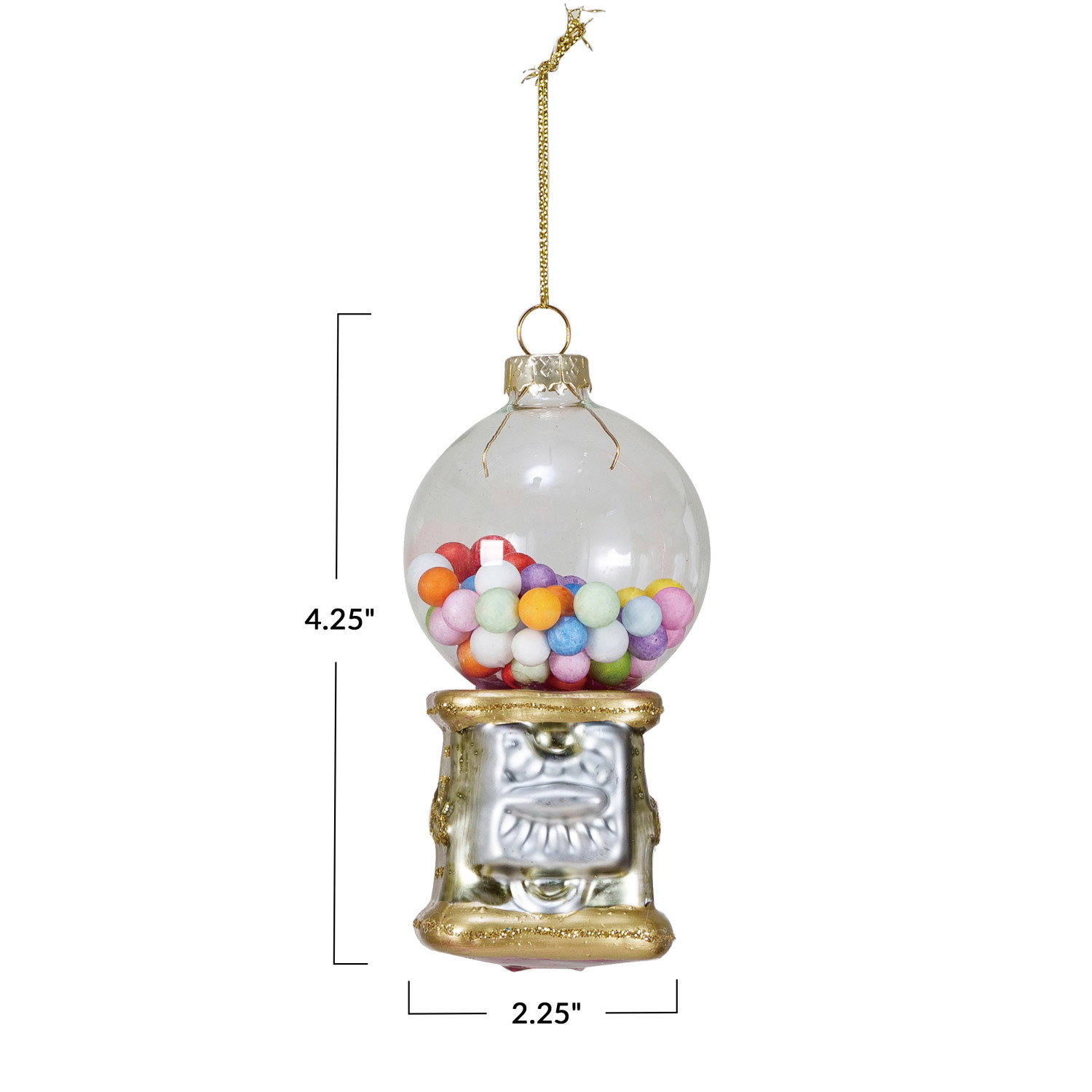 Catalog Name: 2-1/4" Round x 4-1/4"H Glass Gumball Machine Ornament w/ Glitter, Multi Color