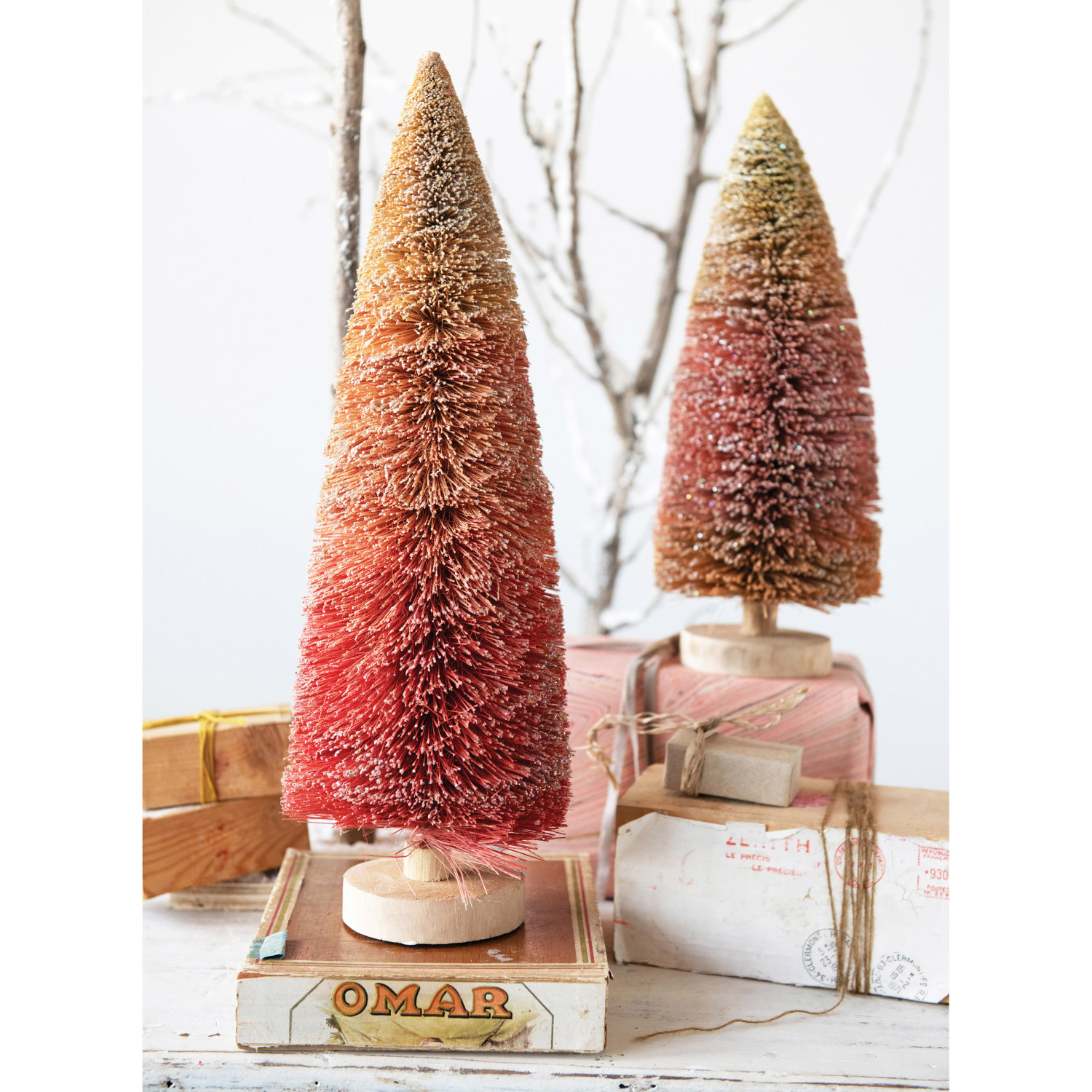 This festive tree is a beautiful way to decorate for the holiday season. Made with sisal, this bottle brush tree has a wood base and a fun pink ombre finish. This tree instantly elevates any table tops or shelves, and blends in with any decor styles.