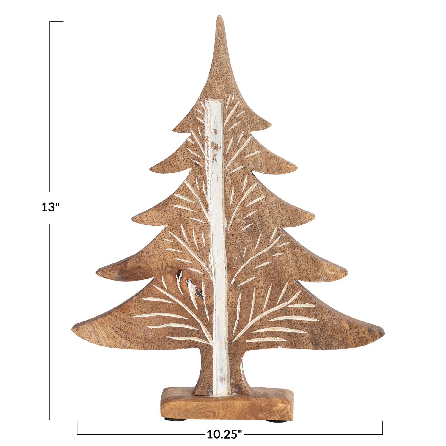 Catalog Name: 10-1/4"L x 13"H Carved Mango Wood Tree w/ Hand-Painted White Branches, Natural