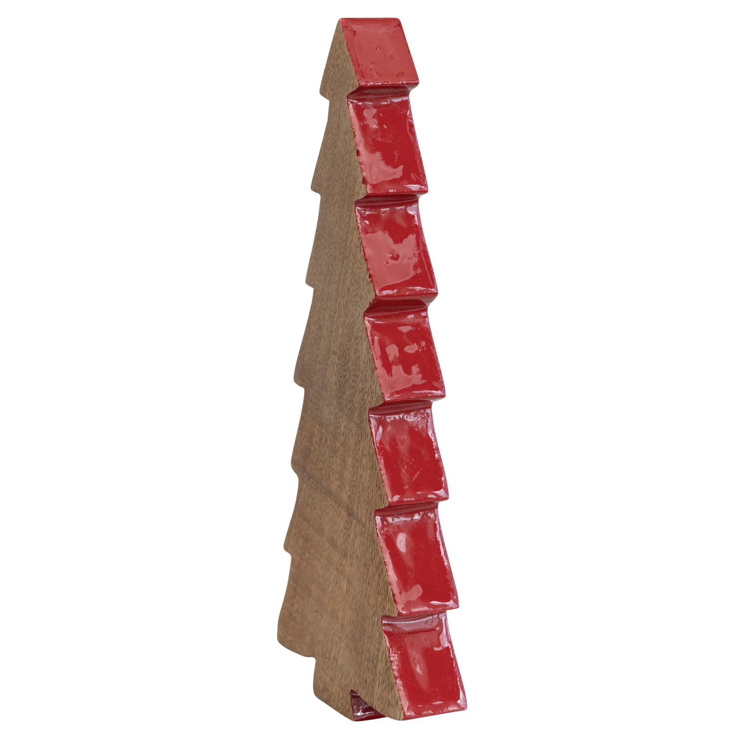 This mango wood Christmas tree with a red enameled edge makes a festive addition to any holiday display. Add a touch of magic to holiday displays with our stunning collection of figures and figurines, including an array of festive silhouettes, perfect for celebrating the season in style.