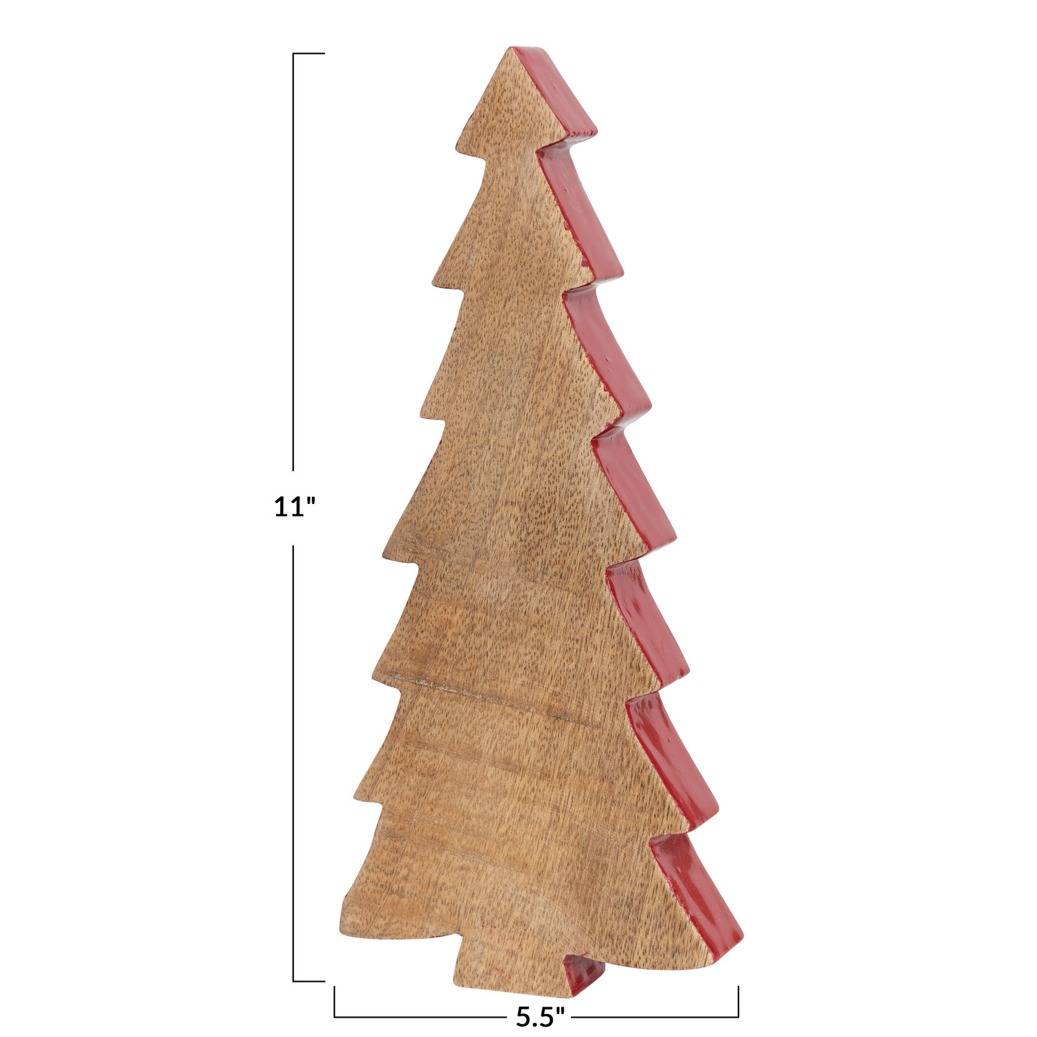 5-1/2"L x 11"H Mango Wood Christmas Tree w/ Red Enameled Edge