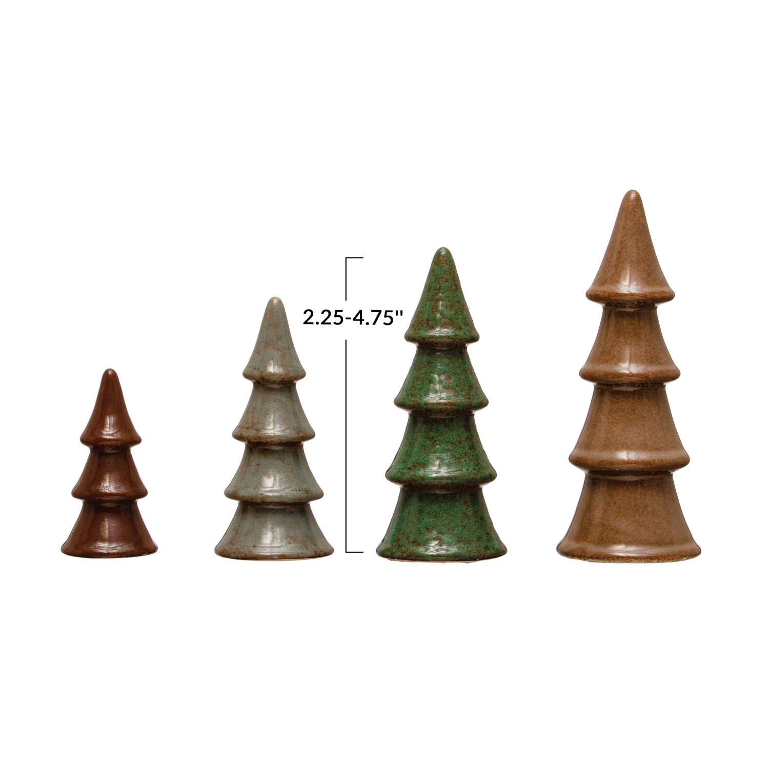 Catalog Name: 2-1/4"H - 4-3/4"H Stoneware Trees, Reactive Glaze, 4 Colors, Set of 4 (Each One Will Vary)