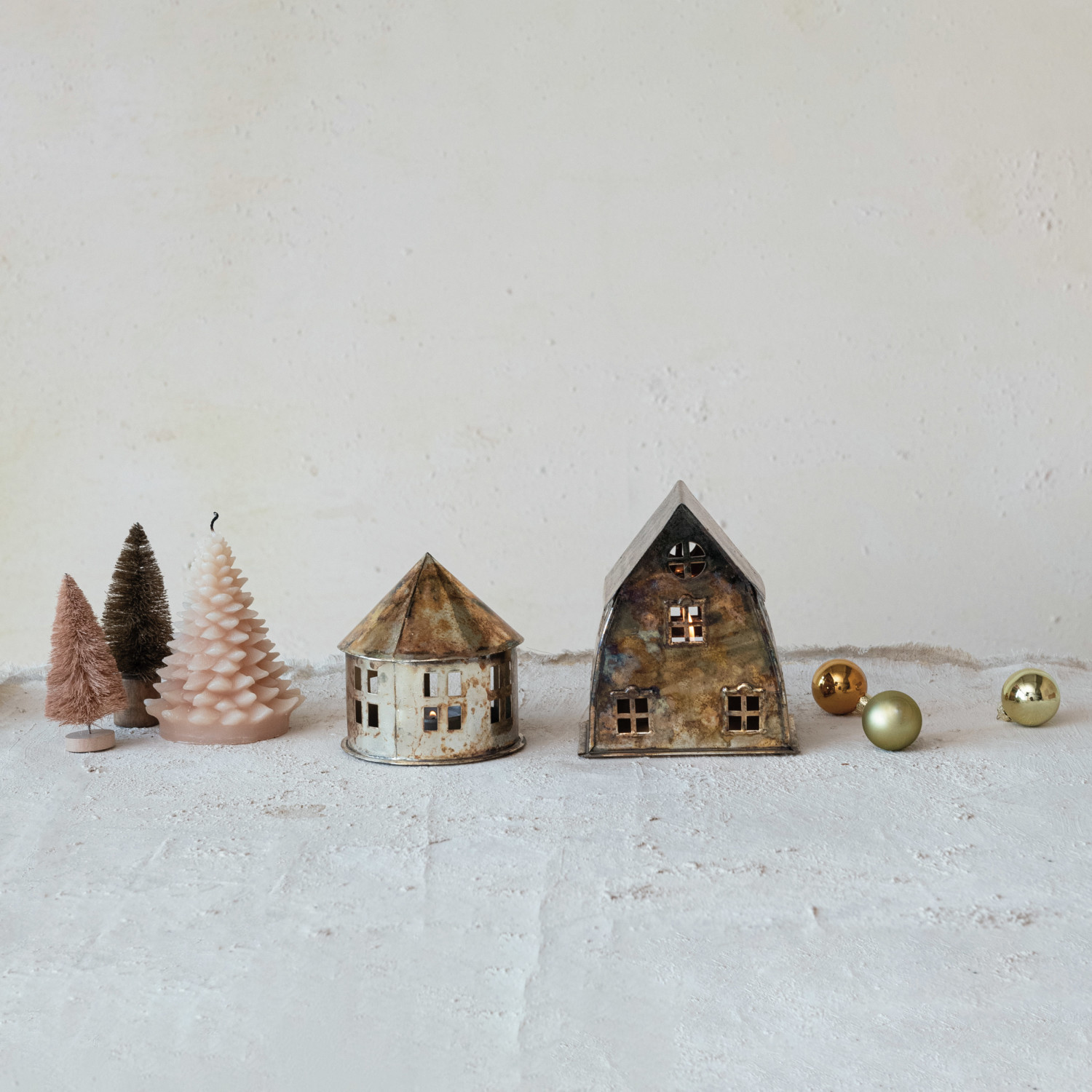 This metal house tealight holder is a charming and unique decorative item that adds warmth and personality to any space, from living rooms to bedrooms. It features a round shape and an oxidized silver finish, giving it a rustic and cozy look. The holder has a hollow interior and a cut-out design, with windows and a door. It can be placed on a table, shelf, or mantel to catch the eye and impress guests. The metal is sturdy, durable, and easy to clean, making it a long-lasting and durable choice. The oxidized silver finish adds character and charm, while the vintage and antique feel make it more appealing. The holder measures 4.25 inches in diameter and 4.25 inches in height, making it a noticeable and attractive accessory. This metal house tealight holder is a great choice for those who love rustic and cozy home decor. A charming metal house tealight holder that features a round shape and an oxidized silver finish. A rustic and cozy piece that can add a touch of warmth and personality to any space, from living room to bedroom. Ideal for holding a tealight candle and creating a soft and romantic glow in the space.