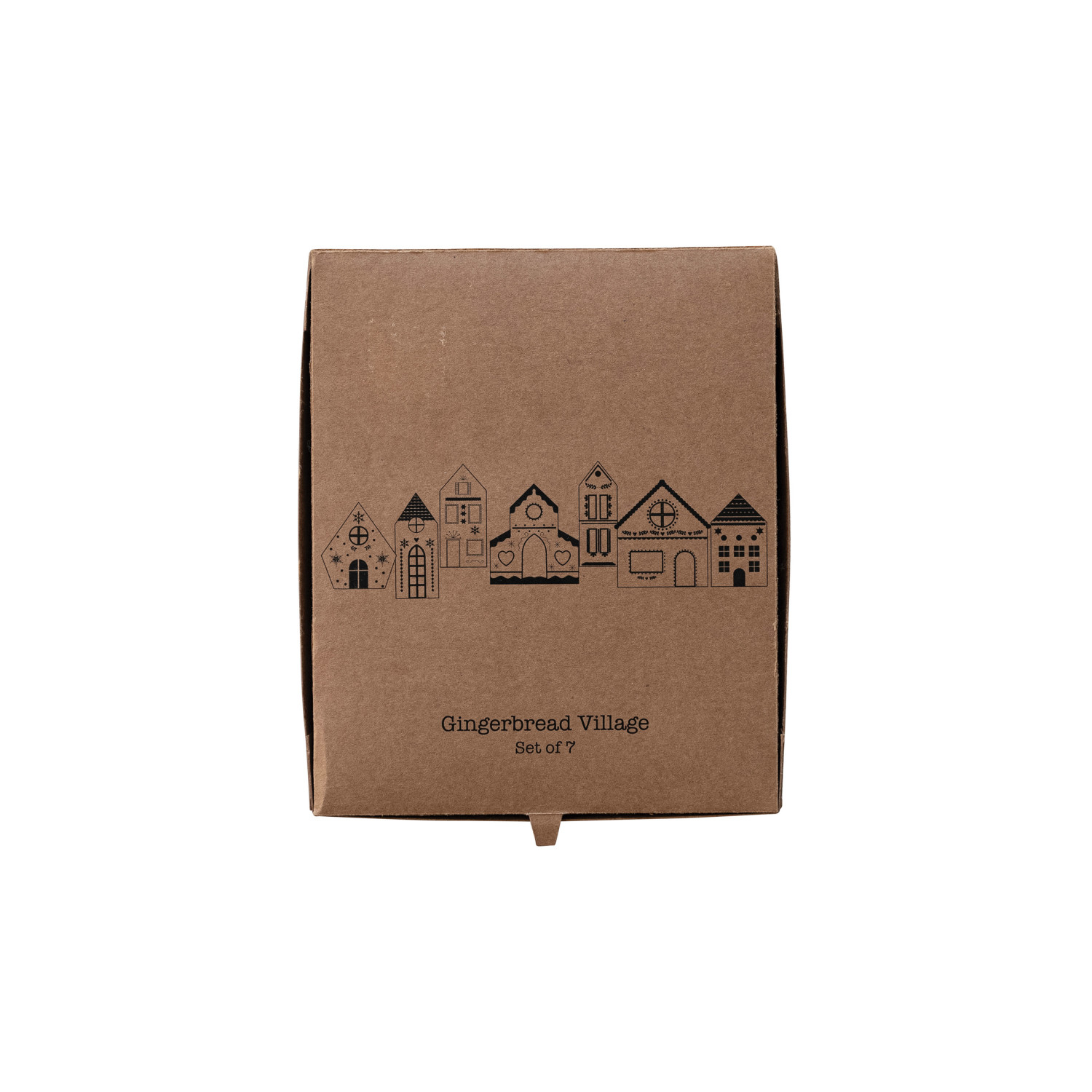Painted Recycled Cardboard Gingerbread House Village, Boxed Set of 7
