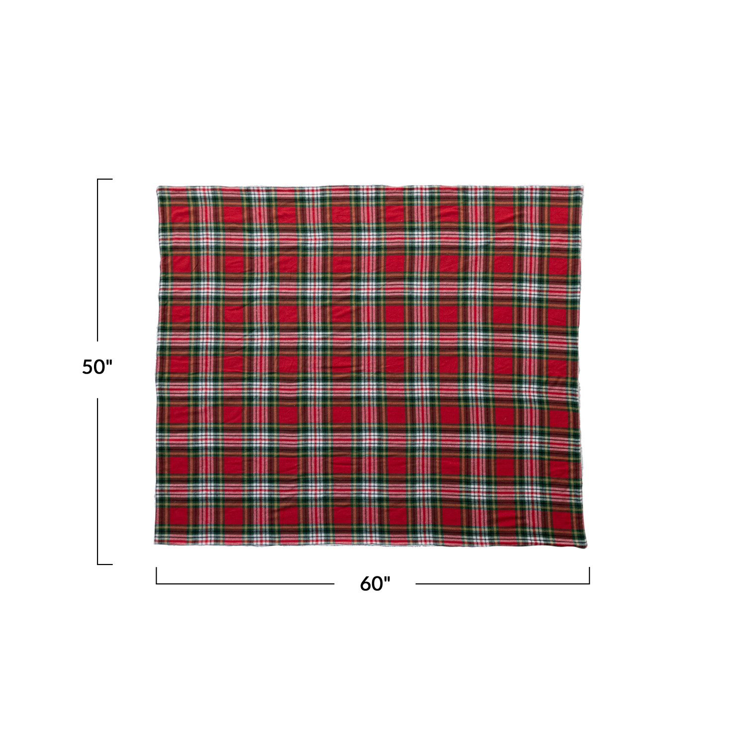 Catalog Name: 60"L x 50"W Brushed Cotton Flannel Throw w/ Sherpa Back, Multi Color Plaid