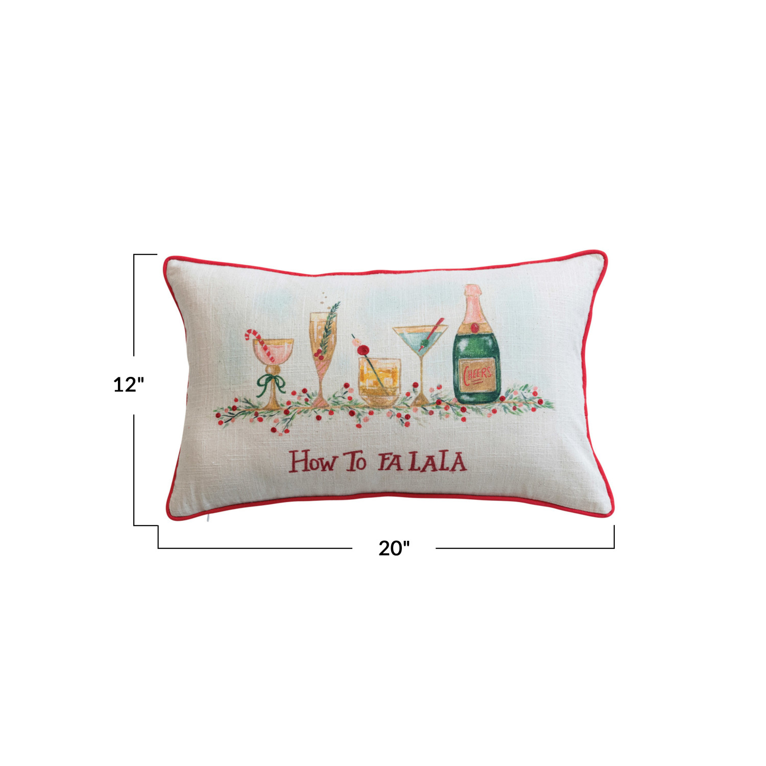 This lumbar pillow is a cheerful celebration of the season, featuring a multicolored "How to FA LA LA" print that's sure to bring joy. The bright embroidery and bold red piping add a touch of holiday spirit, while the all-cotton construction offers both comfort and durability. Whether it's brightening up a sofa or offering support in a reading chair, this pillow is a delightful way to infuse every space with festive charm. It measures 20 in length and 12 in height, making it a versatile addition to any seating area. Its elongated shape makes it an excellent choice for lumbar support, ensuring both style and functionality. A lively cotton slub lumbar pillow, printed with the festive phrase "How to FA LA LA" and accented with vibrant embroidery and red piping. An ideal choice for adding a splash of holiday fun to any room, this pillow is perfect for a seasonal refresh or as a whimsical year-round accent. A comfortable cotton fill makes this pillow not only a visual delight but also a supportive companion.