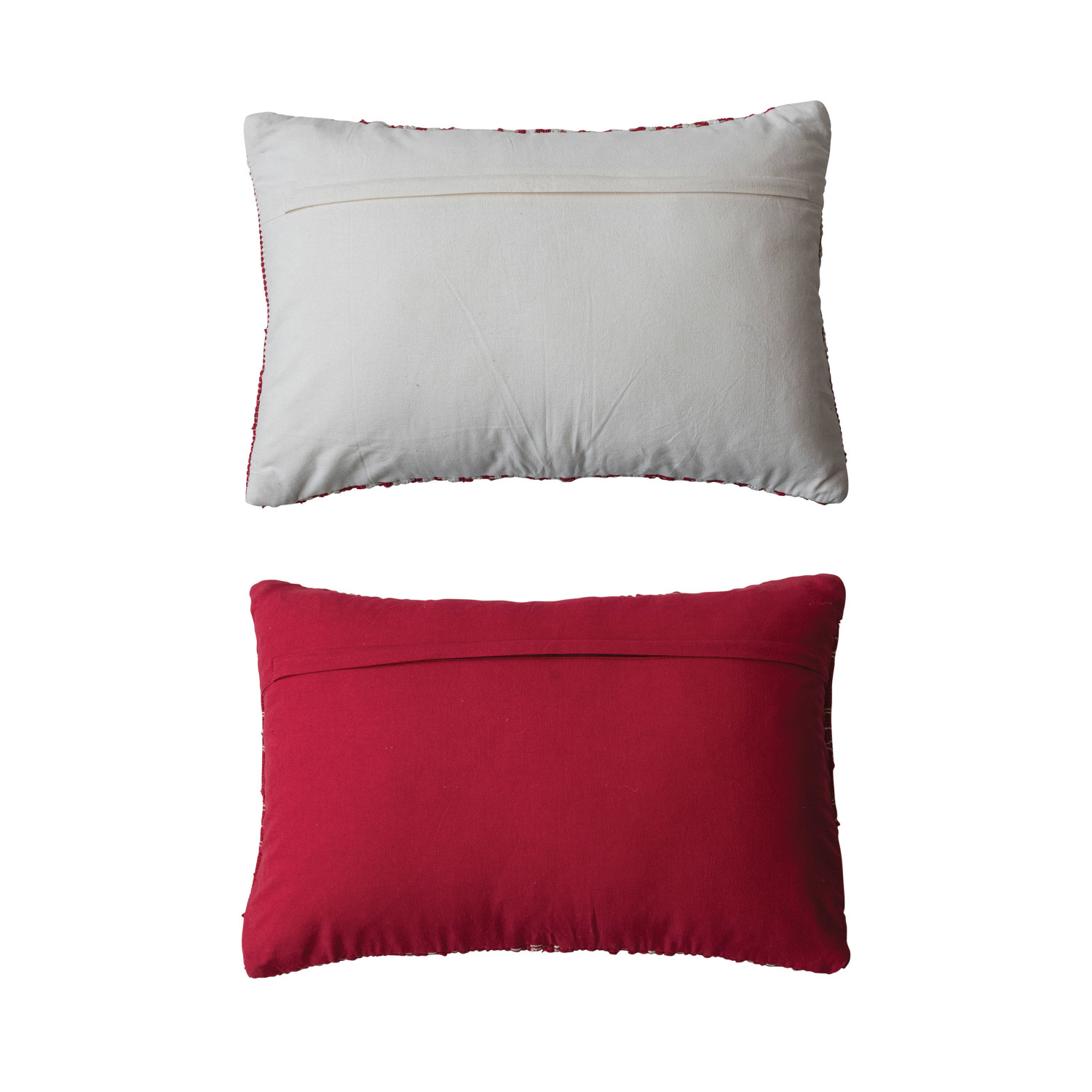 Catalog Name: 24"L x 16"H Hand-Woven Recycled Cotton Chindi Lumbar Pillow, Red & White, 2 Styles