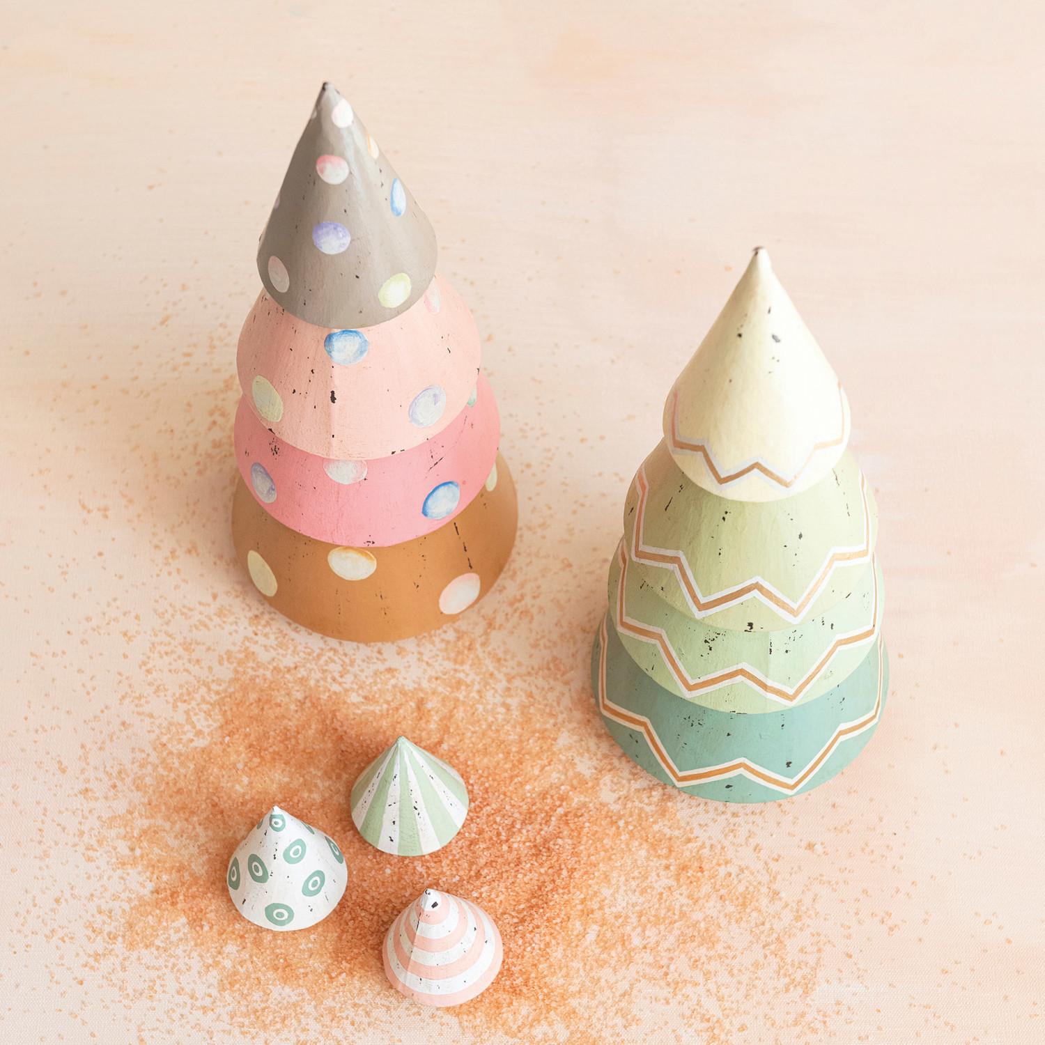 Catalog Name: 2-1/2" Round x 3-1/2"H Hand-Painted Paper Mache Tree, Multi Color, 3 Styles (Each One Will Vary)