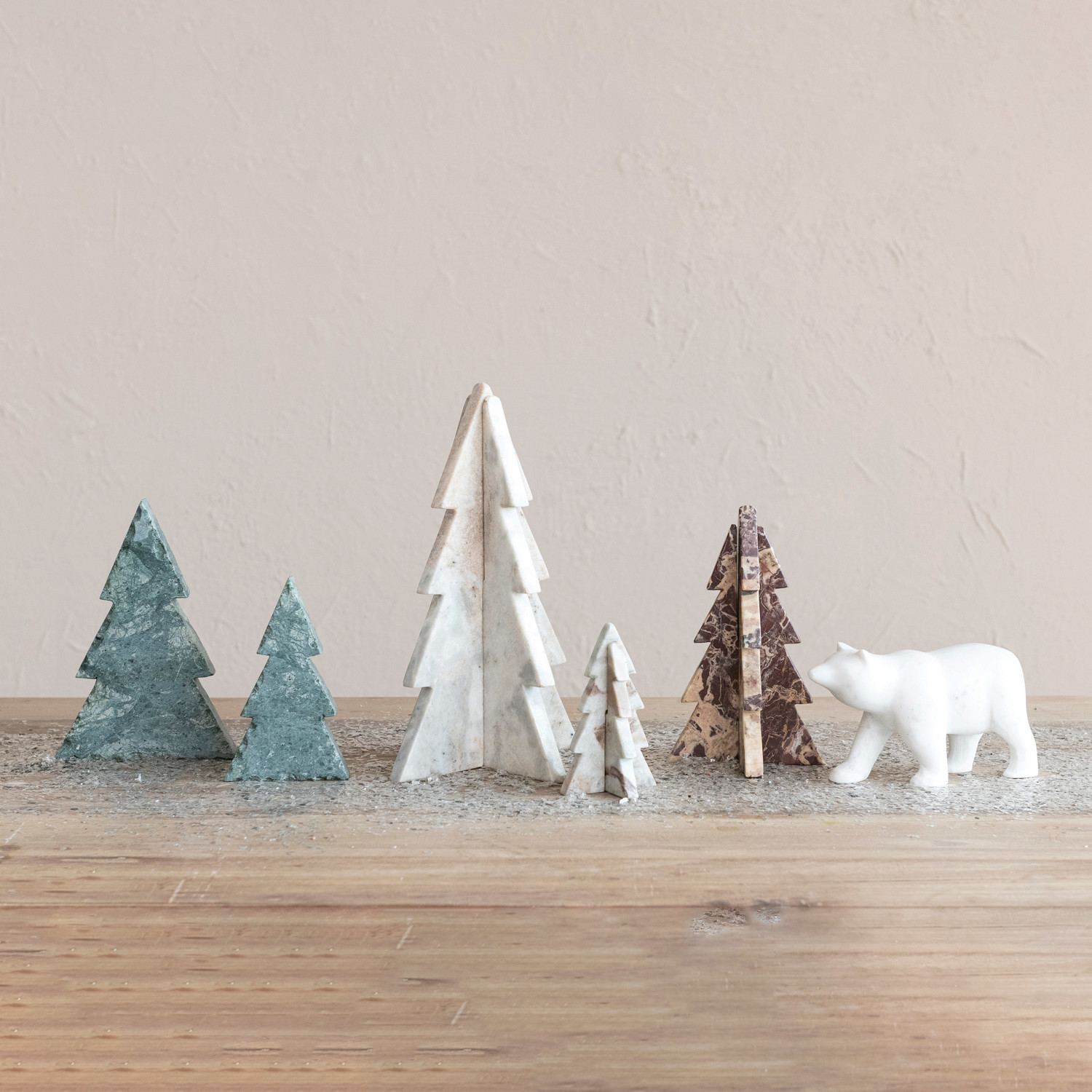 This cream-interlocking marble tree is a lovely and unique way to decorate for the holidays. It features a marble tree that has a cream color and an interlocking design, creating a stunning and eye-catching effect. The tree has a natural and elegant look that can suit any style and theme, from traditional to modern. The tree is ideal for displaying on a table, mantel, shelf, or window sill, where it can add a touch of charm and warmth to the space. The tree can also be easily assembled and disassembled, making it a convenient and reusable option. The tree is made of marble that is durable, smooth, and easy to clean, making it a long-lasting and high-quality option. It measures 7.5 inches in diameter and 12 inches in height, making it a graceful and noticeable centerpiece. Elevate the holiday decor with this eye-catching Christmas tree, adding both style and a touch of whimsy. An organic and unique marble tree that has a cream color and an interlocking design. A natural and elegant addition to any holiday decor, this tree brings a touch of sophistication and style to any room. Ideal for displaying on a table, mantel, shelf, or window sill, this tree can be easily assembled and disassembled for storage and reuse.